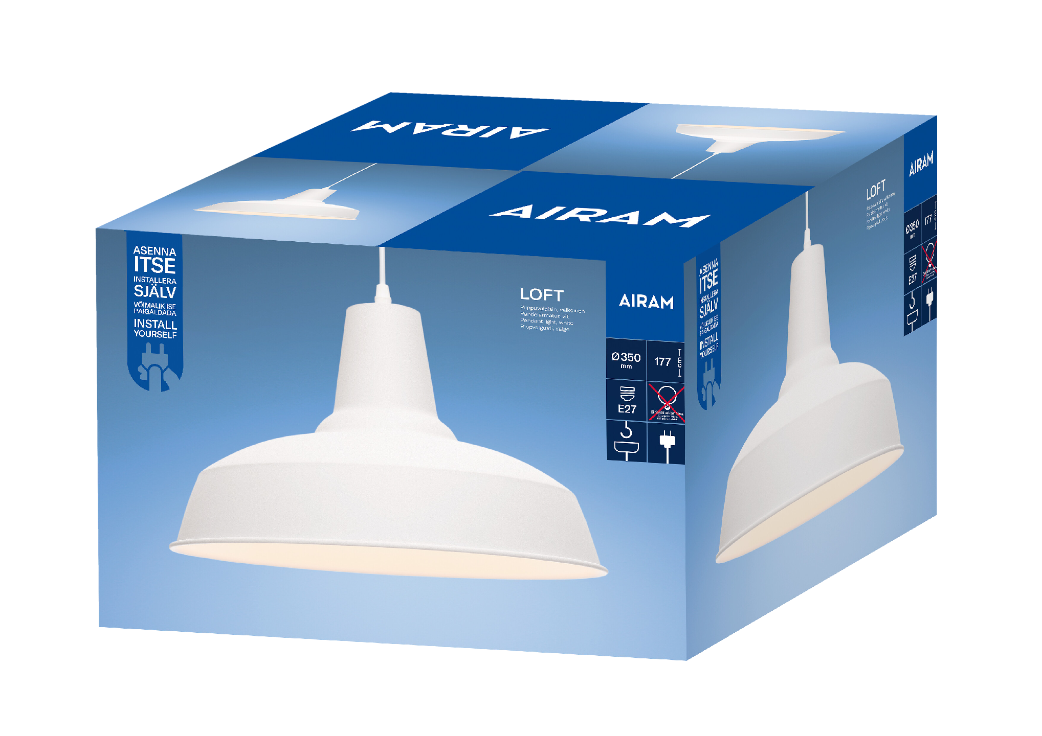 Kokeile erilaisia polttimoita ja led-valoja, E27-kantainen lamppu myydään erikseen.