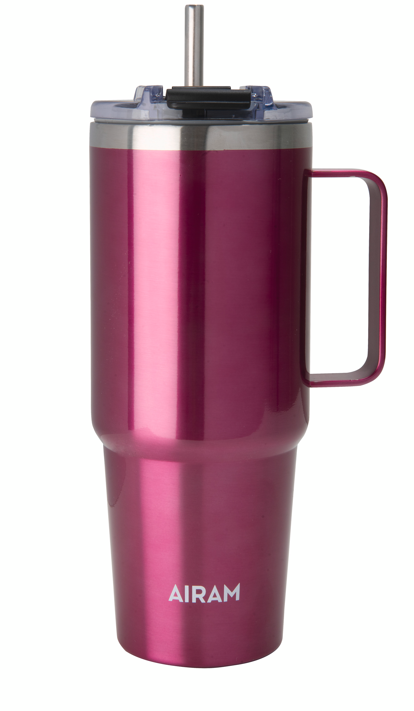 Airam Jumbo on trendikäs ja reilunkokoinen teräsmuki ISOON janoon salille, konttorille jne. Kapeamman pohjan ansiosta muki mahtuu myös auton juomatelineeseen. Mukin tilavuus on 0,85 L. Mukissa kumitiivistetty korkki kierteillä. Korkissa on lukittava juoma-aukko ja kumitiivisteinen reikä metallipillille. Pilli sisältyy pakkaukseen. Roosa nauha -teemaan sopiva pinkki sävy.