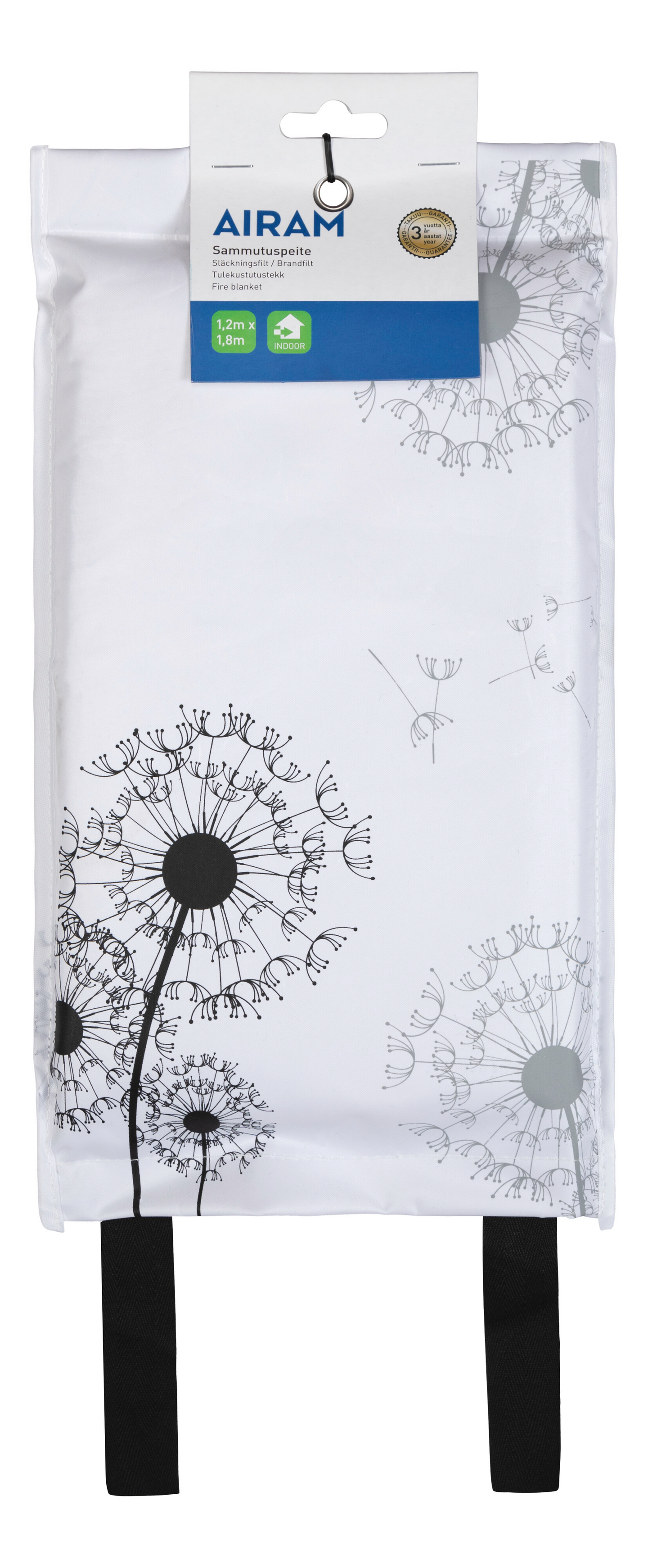 Sammutuspeitteessä on kaunis vaalea kuosi. Sopii sisustukseen, mutta palvelee hädän hetkellä. EN1869:1997 hyväksytty.