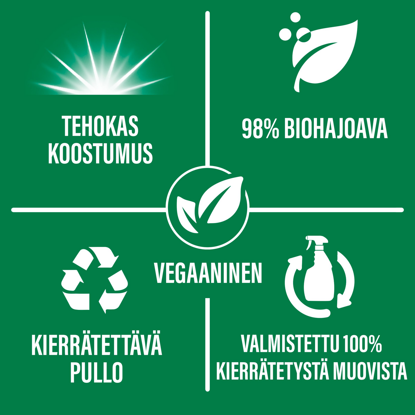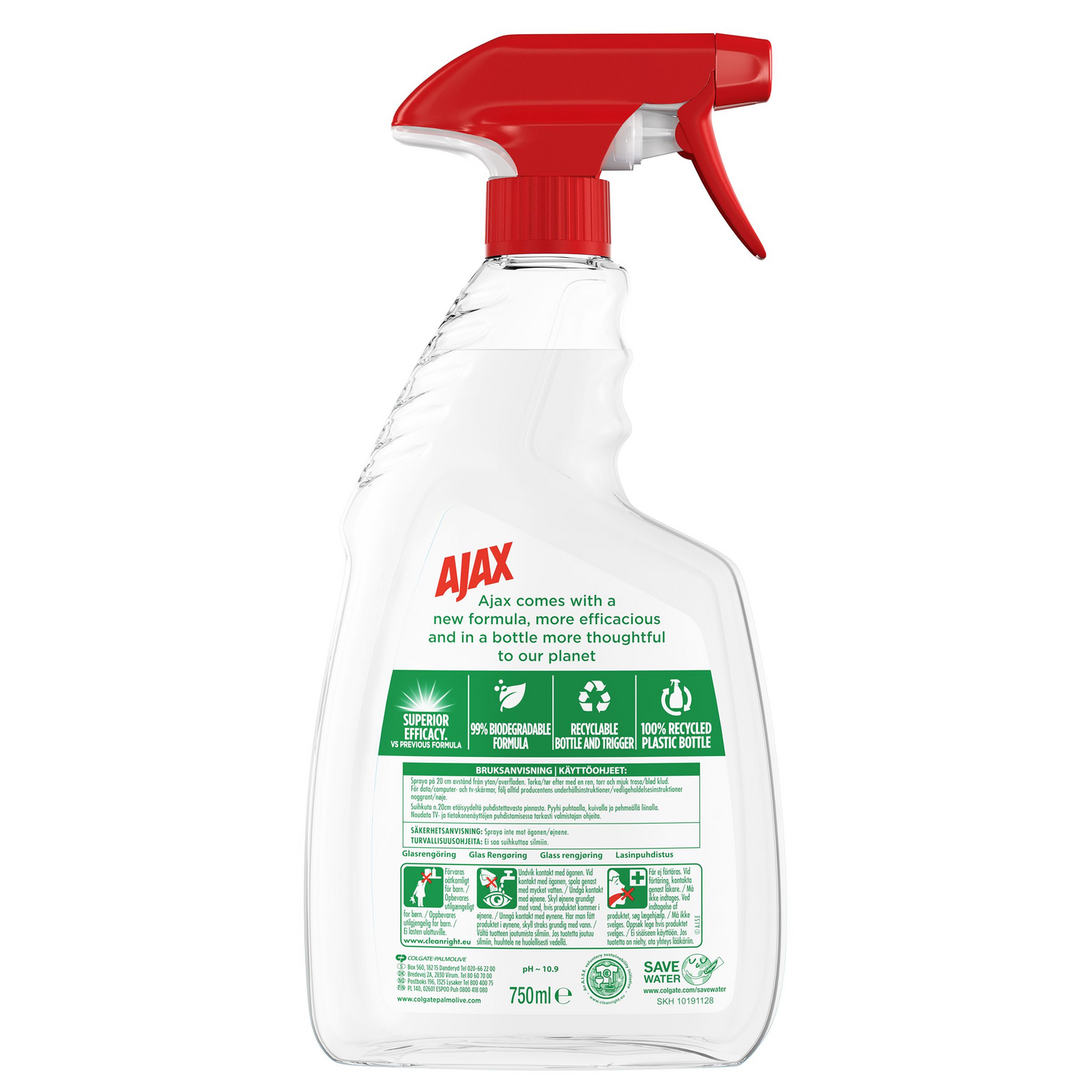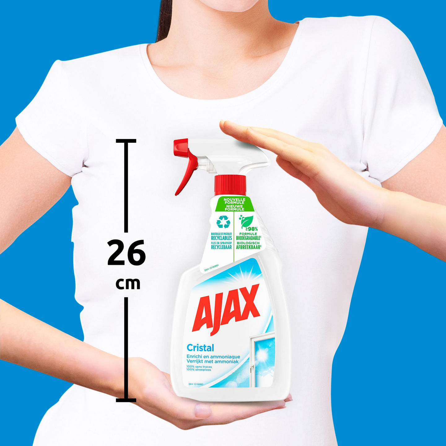 Ajax Crystal Clean -lasinpesusprayn uusi tehokas ja vegaaninen koostumus puhdistaa lasit viiruja jättämättä, mutta on huomaavaisempi planeetalle. Sen ainesosista 99% on luonnollista alkuperää ja 99% biohajoavia, ja se tulee kierräetystä muovista valmistetussa pullossa.