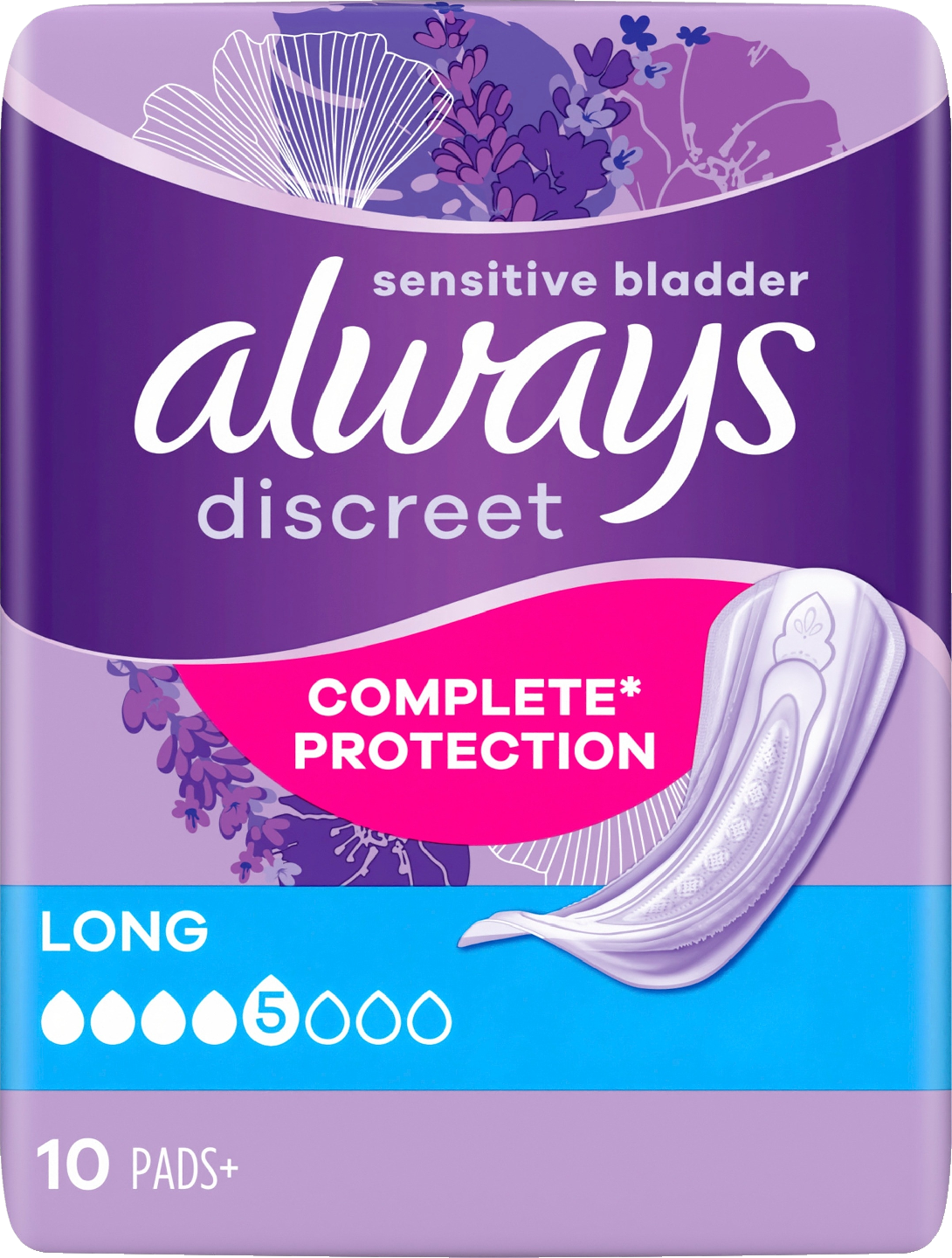 Always Discreet Long -inkontinenssisuojat tarjoavat täyden suojaavuuden ja huomaamattoman istuvuuden. Side on suunniteltu suojaamaan luotettavasti ohivuodoilta, hallitsemaan hajuja, tuntumaan kuivalta, pehmeältä ja hellävaraiselta ihoa vasten sekä istumaan huomaamattomasti. Jos aivastaminen tai nauraminen aiheuttavat virtsankarkailua, Always Discreet Long -siteet suojaavat tehokkaasti ja huomaamattomasti, jotta voit tuntea olosi varmaksi.