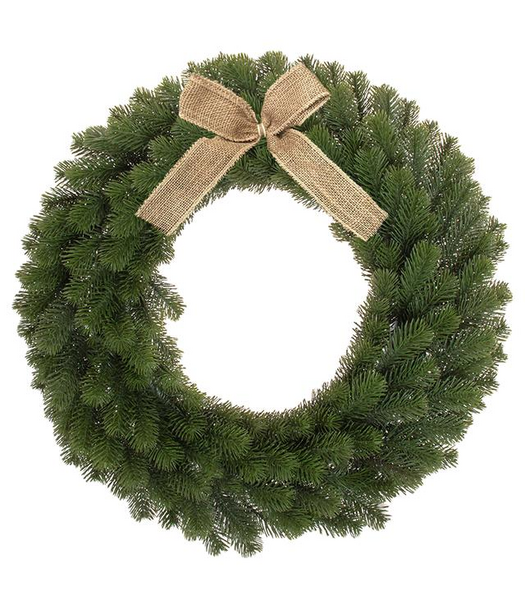 Havukranssi juuttirusetilla. Koko 60x60x12cm. Muovi.