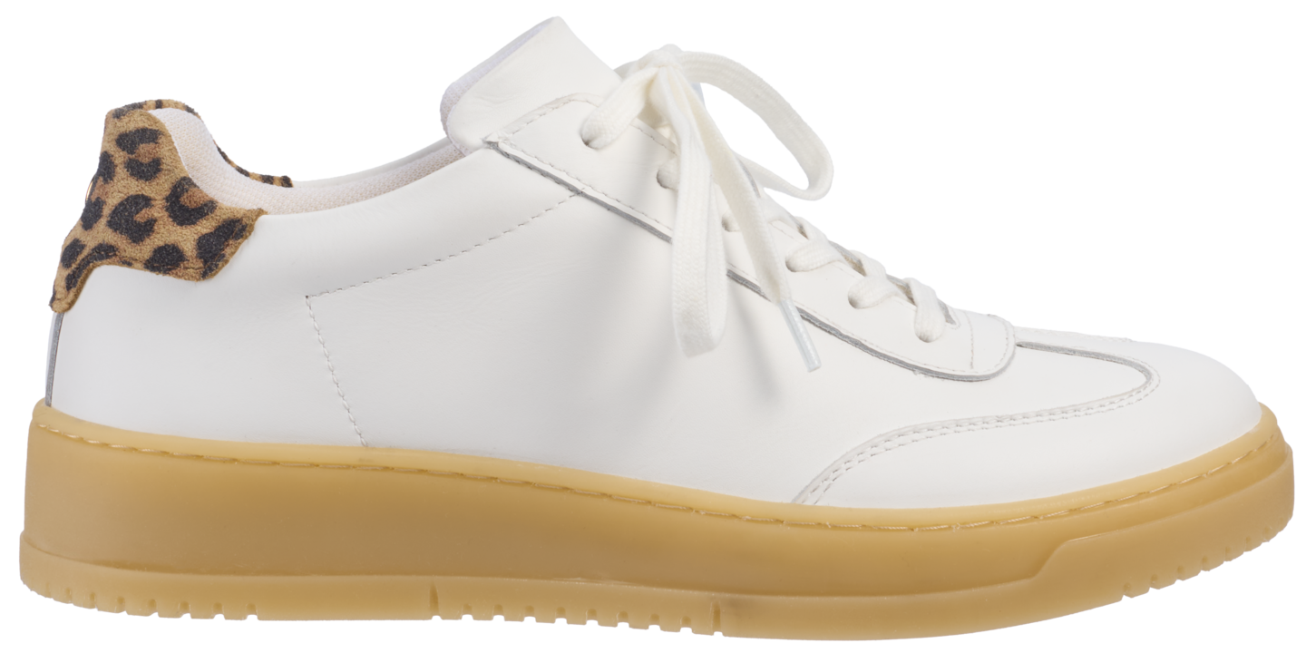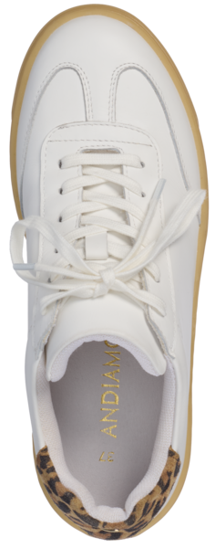 Andiamo Keira naisten tennarit. Muodikkaiden tennareiden päällinen ja sisäpohjallinen on nahkaa sekä vuori tekstiiliä. Takana pieni leopardikuvioinen yksityiskohta. Ulkopohja tpr-kumia.