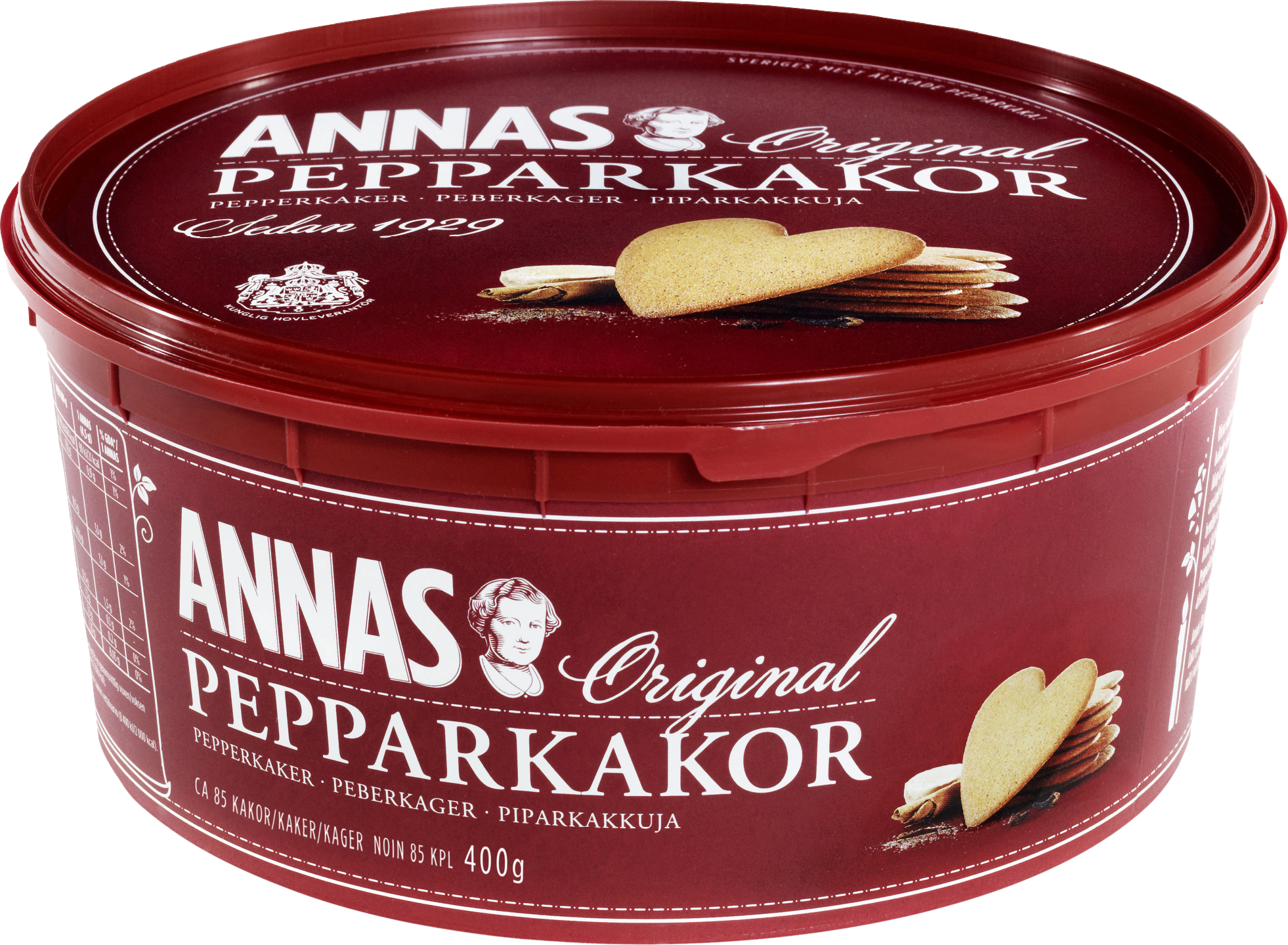 Rakastettuja Annas-piparkakkuja on leivottu Ruotsissa jo vuodesta 1929. Kotileipomona aloittanut Annas oli siskosten Anna ja Emma Ka rlsson yritys, jonka valikoimiin kuuluivat piparit sekä pikkuleivät. Nykyään Annas on maailmankuulu piparkakkumerkki, joka tunnetaan erityisen ohuista ja rapeista pipareistaan. Nämä herkullisen rapeat Annas sydämen malliset piparkakut sopivat erinomaisesti glögin sekä juustojen kanssa nautittaviksi. Tämä klassikkotuote maistuu kaikille ja kaunis pakkaus sopii hyvin myös lahjaksi.