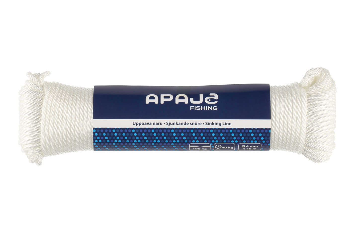 Laadukkaasti punottu uppoava polyesterinaru esimerkiksi kalaverkkojen laskuun. 4 mm x 40 m. Murtolujuus 190 kg. Kantavuus 40 kg. Materiaali: polyesteri.