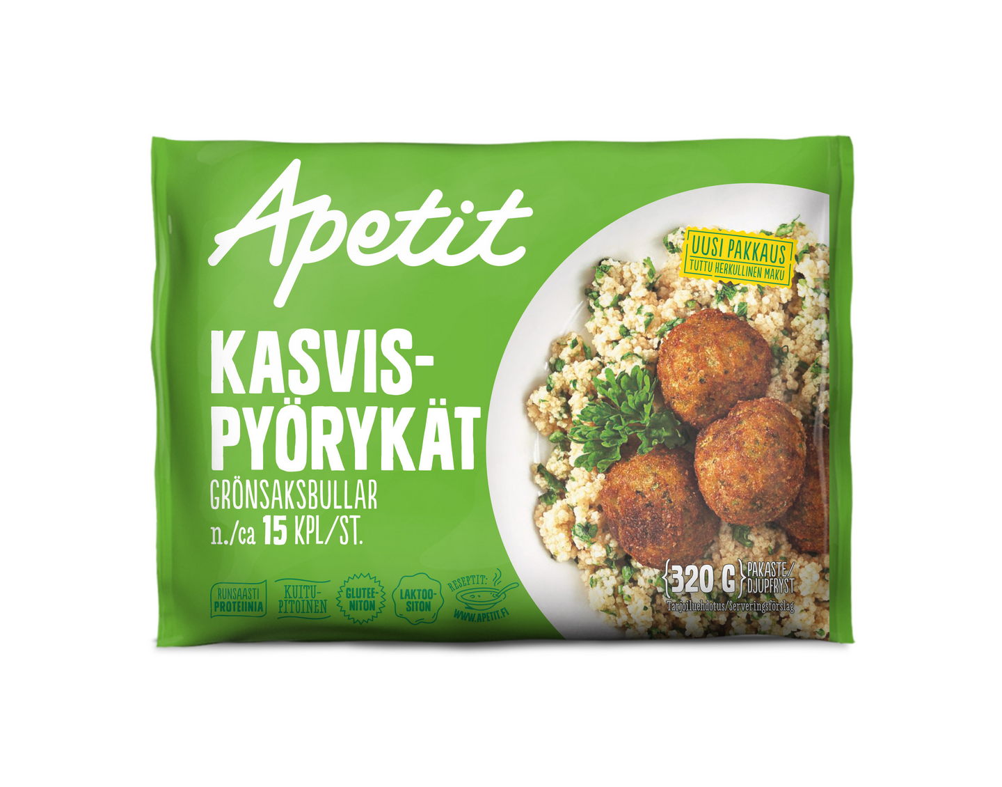 Maukas Kasvispyörykkä moneen makuun. Pihvi valmistettu tutuista ja turvallisista kasviksista ja maustettu ihanilla pestomausteilla (persilja, valkosipuli, basilika ja sitruuna). Mehevyyttä pyörykkään tuo sulate- ja emmentaljuusto. Tuotteen pinnassa ohut perunarae. Tuote on gluteeniton, laktoositon, kananmunaton, runsasproteiininen ja kuitupitoinen. Soveltuu niin pääruoaksi kuin naposteltavaksikin.