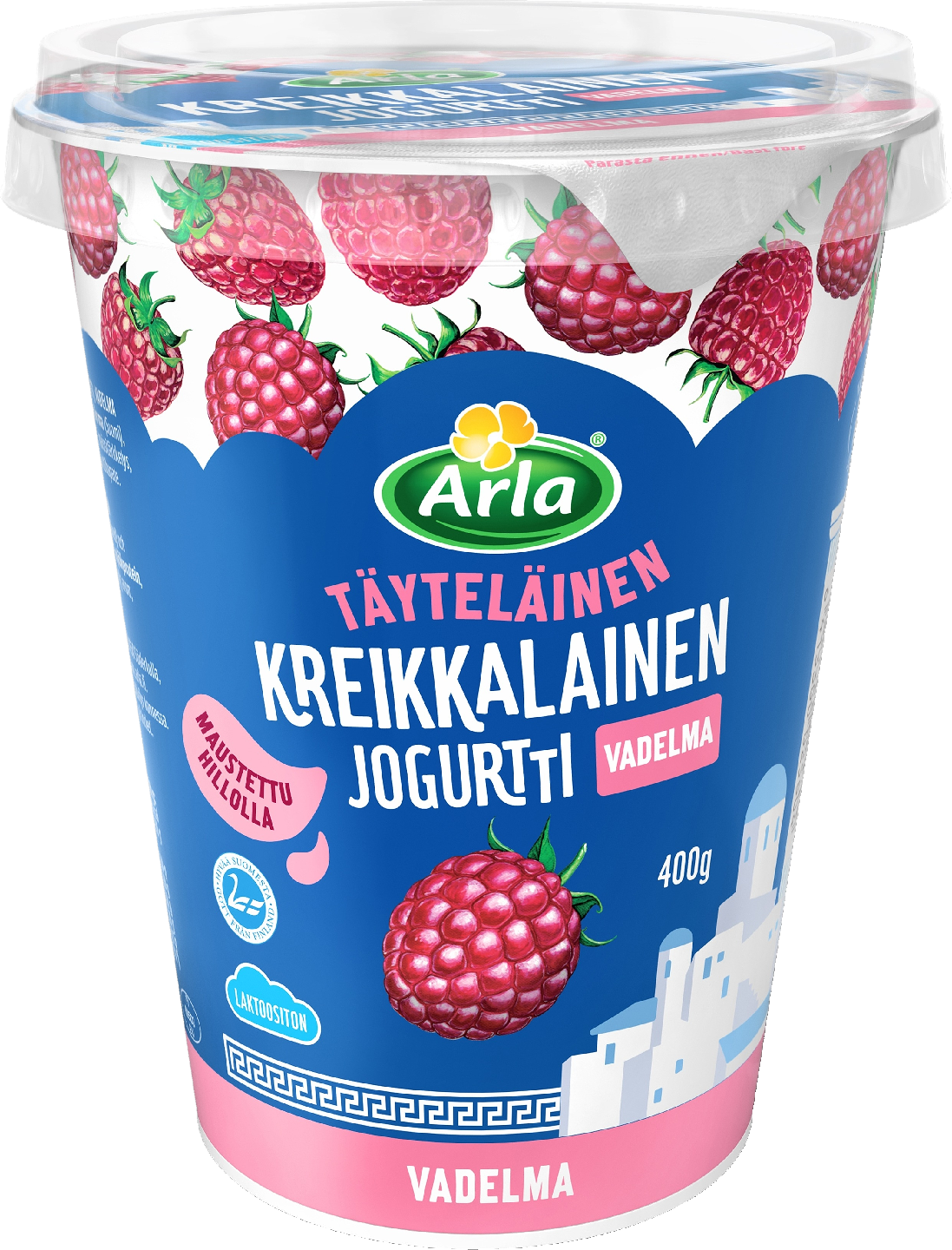Pehmeän täyteläinen ja laktoositon kreikkalainen jogurtti. Makuna herkullinen vadelma. Suomen Sipoossa tehty, aitoon kreikkalaiseen tyyliin.