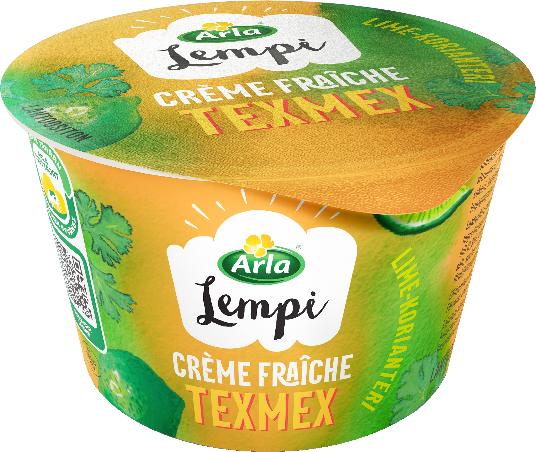 Arla Lempi Texmex creme fraiche lime-korianteri on lempeän raikas ja erittäin maukas kylmäkastike. Levitä tortillojen väliin tai viimeistele tacot lusikallisella täyteläistä crème fraichea. Maistuu erinomaiselta myös dippikastikkeena nachojen tai kasvisten kanssa.
