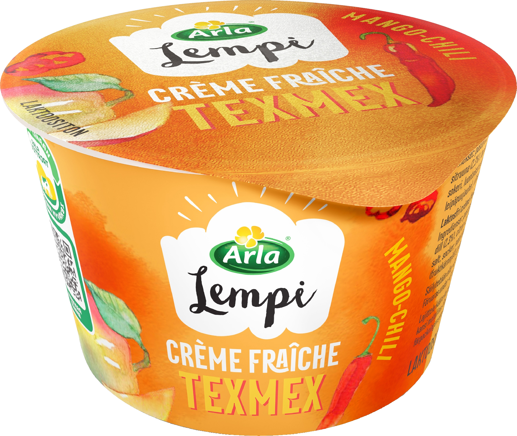 Arla Lempi Texmex creme fraiche mango-chili on lempeän tulinen ja erittäin maukas kylmäkastike. Levitä tortillojen väliin tai viimeistele tacot lusikallisella täyteläistä crème fraichea. Maistuu erinomaiselta myös dippikastikkeena nachojen tai kasvisten kanssa.
