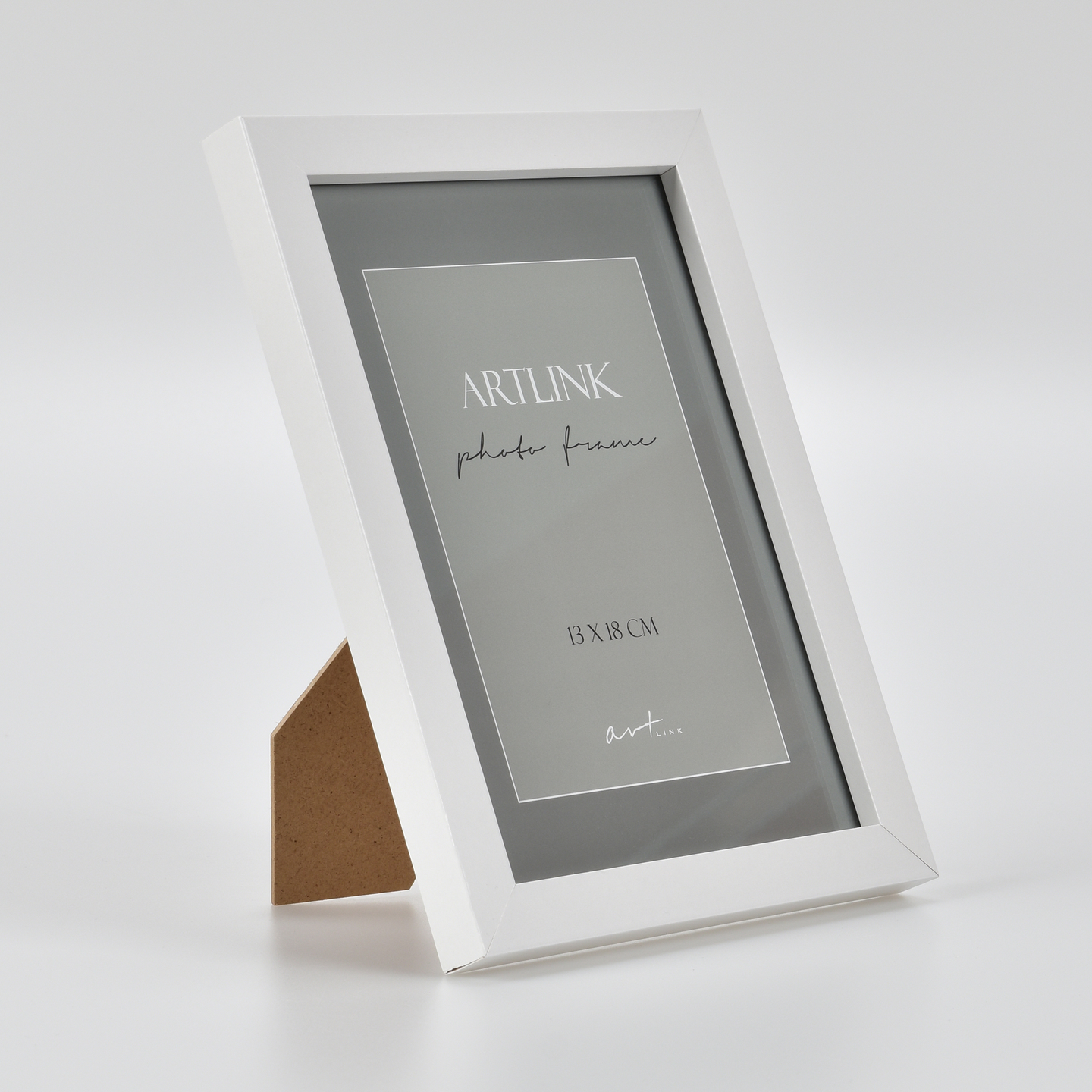 Valkoinen valokuvakehys on tukeva ja kestävä. Kehys sopii sekä pysty- että vaakasuoraan asetteluun. Kehyksen takana on kiinnityskoukku seinäkiinnitystä varten sekä tuki, jonka avulla kehyksen voi laittaa pöydälle tai hyllylle. Kehyksen klassinen muotoilu sopii moneen sisustukseen. Kehyksen ulkomitat ovat 15 x 20 cm. Kehykseen sopii 13 x 18 cm kokoinen kuva.