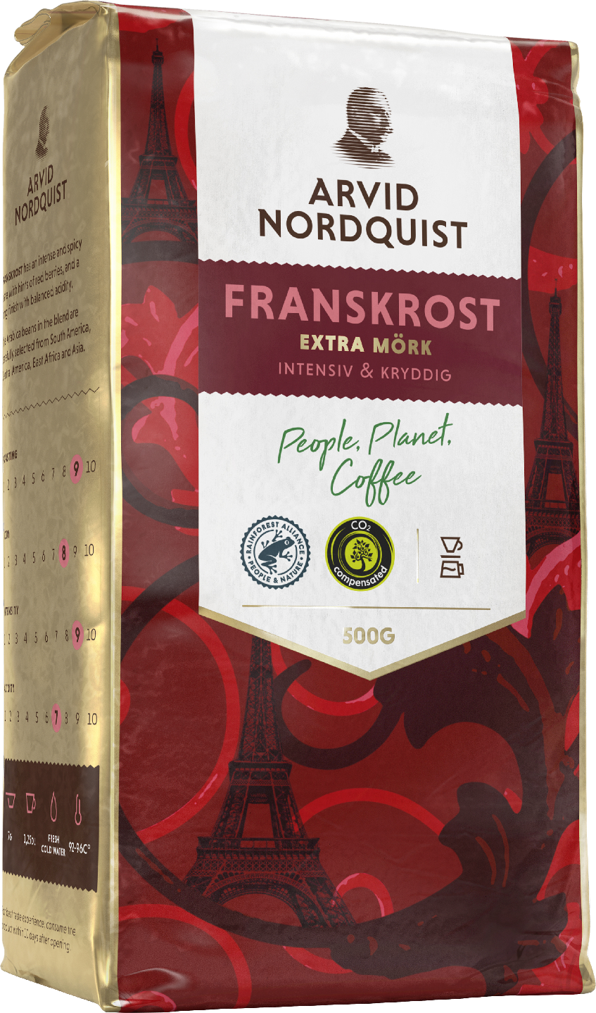 Erittäin tummaksi paahdettu suodatinjauhettu kahvi, joka sopii mainoisti maidon kanssa. Keski-Amerikan tuliperäisen maaperän pavut antavat kahville sen täyteläisen luonteen. Runsas tuoksu tarjoaa tumman suklaan sekä mantelin aromeja. Täyteläinen kaakaon maku ja selkeä inkiväärin vivahde. Tasapainoinen hapokkuus ja selkeä kirpeys. Pitkä ja voimakas jälkimaku.