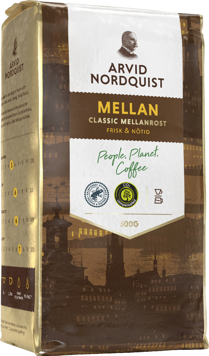 Keskipaahto - raikas ja hedelmäinen. Suodatinjauhatus. Tästä on tullut meidän klassikko ja on hyvin pidetty kahvisekoitus, jota vaalimme tarkkaan. Tuoksussa tumman suklaan aromeja. Maku on täyteläinen jossa on hienostuneen pehmeä kirpeys. Raikas ja elegantti makuelämys jossa on pitkä ja tasapainoinen jälkimaku.