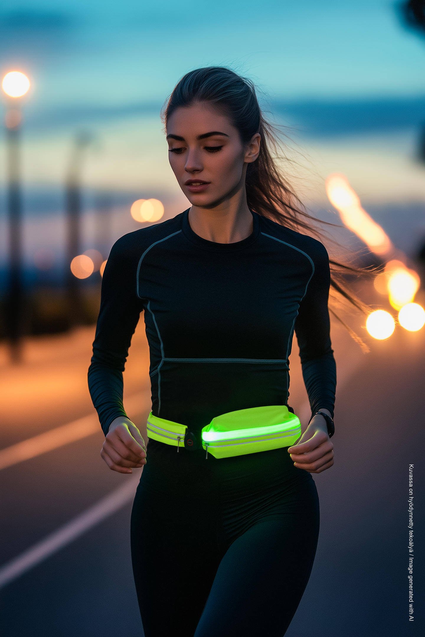 Atom juoksuvyö LED-valolla. Uusi malli suositusta juoksuvyöstä, jonka avulla puhelin sekä muut pientarvikkeet kulkeutuvat vaivatta matkassa lenkkien aikana. LED-valo antaa lisänäkyvyyttä pimeässä. Säädettävä hihna ja vetoketjulla suljettavat taskut. Helppo käyttää. 1 kpl 601520 3,7V 150mAh litiumpolymeeriakku. USB-kaapeli mukana.
