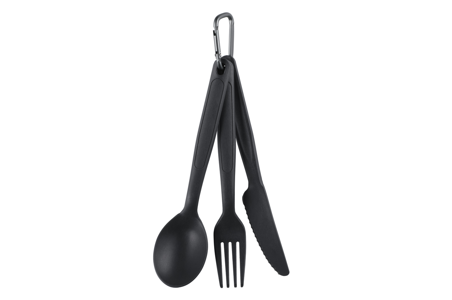 Kevyet retkiaterimet karabiinihakasessa jolla ne on helppo kiinnittää esimerkiksi rinkkaan ja ne pysyvät tallessa missä tahansa. Materiaali: polypropeeni, lasikuitu, alumiiniseos.