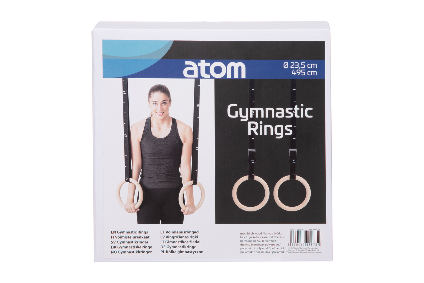 Puiset renkaat soveltuvat useimpien akrobatia- ja voimisteluliikkeiden harjoittelemiseen. Renkaiden avulla voit aloittaa harjoittelun kotona ja parantaa tekniikkaasi. Renkaat eivät ole vain voimistelijoille, myös kehonrakentajat voivat hyötyä harjoittelusta renkaiden parissa. Voimistelurenkaiden avulla voit tehdä erilaisia ylävartalon harjoituksia, kuten rengasnousuja, vetoja, lihasnousuja, rengassoutuja ja paljon muuta. Renkaat on valmistettu kestävästä puusta. Renkaan halkaisija 23,5 cm. Remmin pituus 495 cm. Enimmäiskantavuus 300 kg. Materiaali: koivu, polyamidi.