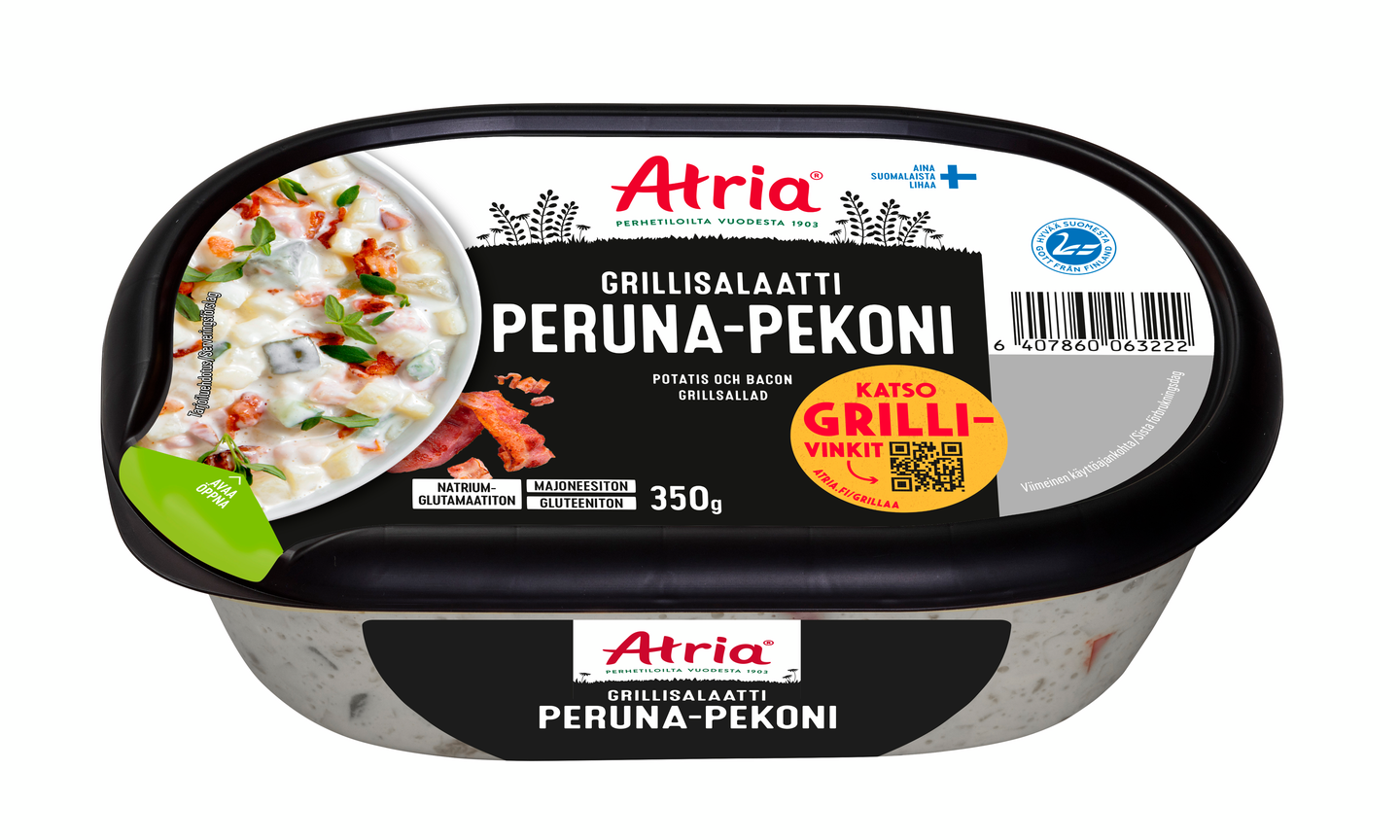 Peruna-Pekoni Grillisalaatti on maukas majoneesipohjainen perunasalaatti, joka on maustettu pekonilla. Peruna-Pekoni Grillisalaatti sopii mainiosti grilliruoan lisukkeeksi, vappupiknikille tai uuden vuoden tarjoilupöytään. Maukas salaatti sisältää perunan, majoneesin, pekonin ja mausteiden lisäksi myös kurkkua, säilykekurkkua sekä sipulia. Vaikka Peruna-Pekoni Grillisalaatti toimiikin parhaiten lisukkeena, sitä voi myös käyttää ruokaisien kolmioleipien rakentamiseen tai voileipäkakun täytteeseen. Halutessaan salaattia voi tuunata esim. lisäämällä pakasteherneitä tai keitettyjä kananmunia, jotka sopivat makupareina niin pekonille kuin myös perunasalaatille. Hienonnettu ruohosipuli vahvistaa myös Pekoni-Peruna Grillisalaatin makua. Voit käyttää ruohosipulia myös koristeluun, ripottelemalla hienonnettua ruohosipulia päälle.
