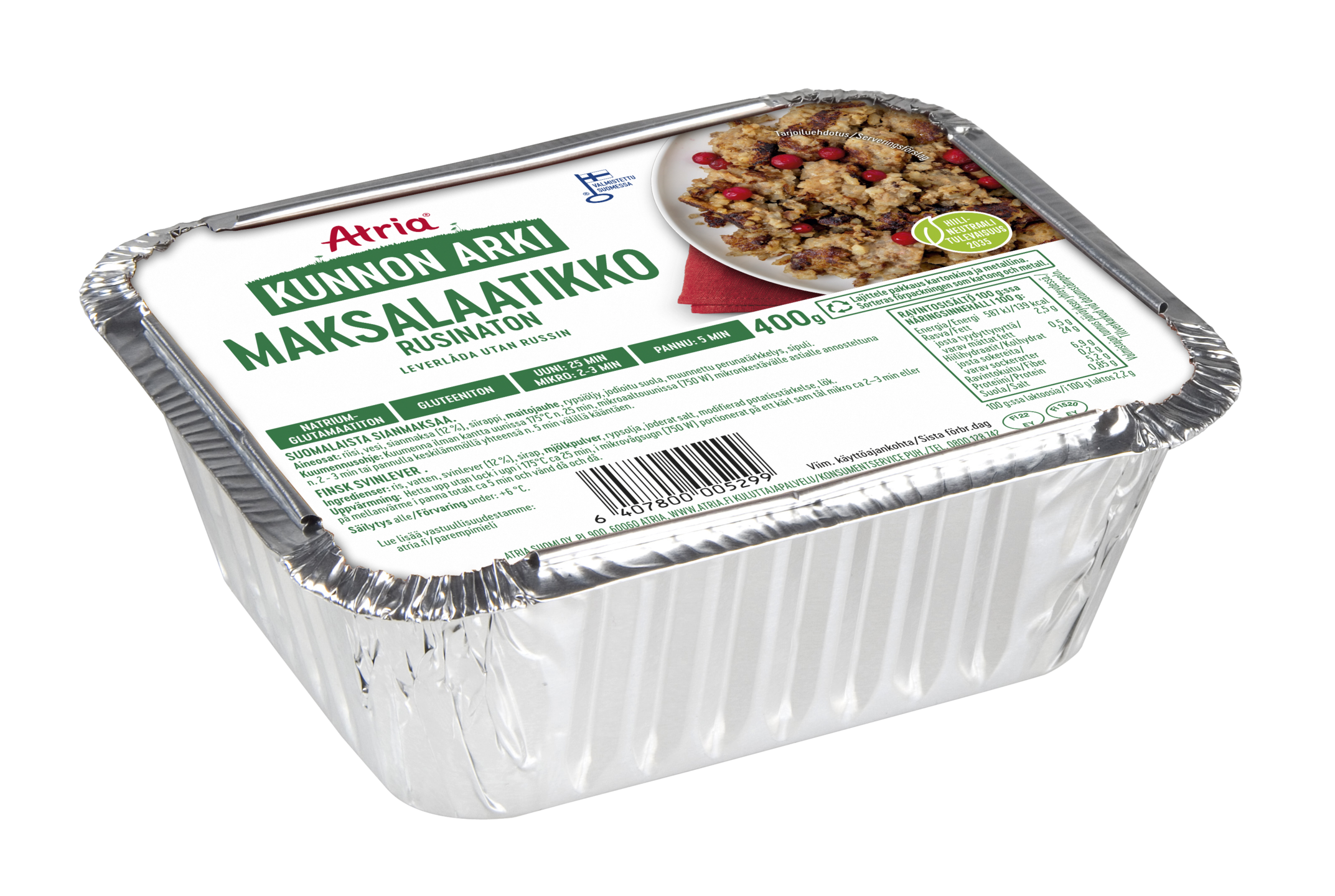 Maksalaatikko on suomalainen perinneruoka. Rusinaton maksalaatikko on valmistettu perinteisen maksalaatikon rinnalle, ajatellen niitä maksalaatikon syöjiä, jotka eivät pidä rusinoista. Atrian rusinattoman maksalaatikon valmistukseen on käytetty mm. suomalaista maksaa, riisiä, kasviöljyä, sipulia ja siirappia. Rusinaton maksalaatikko ei sisällä gluteenia, joten se sopii gluteenitonta ruokavaliota noudattavalle. Maksalaatikko on suosittu arkiruoka, jonka helposti syödä sellaisenaan. Toisaalta maksalaatikkoa tarjotaan myös joulupöydässä, muiden laatikkoruokien rinnalle. Valmis maksalaatikko tuo helpotusta arkeen. Sen voi lämmittää uunissa, mikrossa tai jopa pannulla. Perinteisesti maksalaatikon lisukkeena on tarjoiltu puolukkahilloa tai puolukoita, jotka sopivat hyvin myös rusinattoman maksalaatikon kanssa.