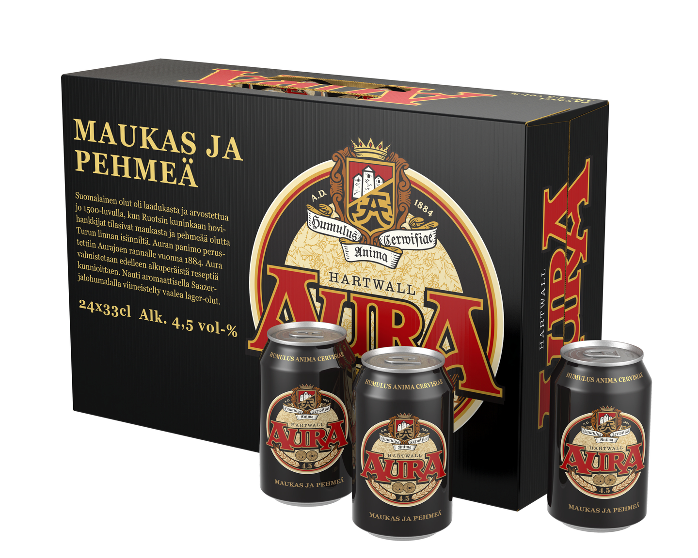Suomalainen olut oli laadukasta ja arvostettua jo 1500-luvulla kun Ruotsin kuninkaan hovihankkijat tilasivat sitä Turun linnan isänniltä. Auran panimo aloitti toimintansa Aurajoen rannalla vuonna 1884. Aura valmistetaan edelleen panimon alkuperäistä reseptiä kunnioittaen. Hartwall Aura on tasapainoinen, vaalea ja raikas, aromaattisella Saazer-humalalla viimeistelty lager-olut. Sopii laajasti erilaisten ruokien kanssa sekä ihan seurustelujuomana. Kokeile esimerkiksi grillatun broilerin tai lihavartaiden kanssa. Tarjoillaan hyvin viilennettynä 6-8 asteisena.