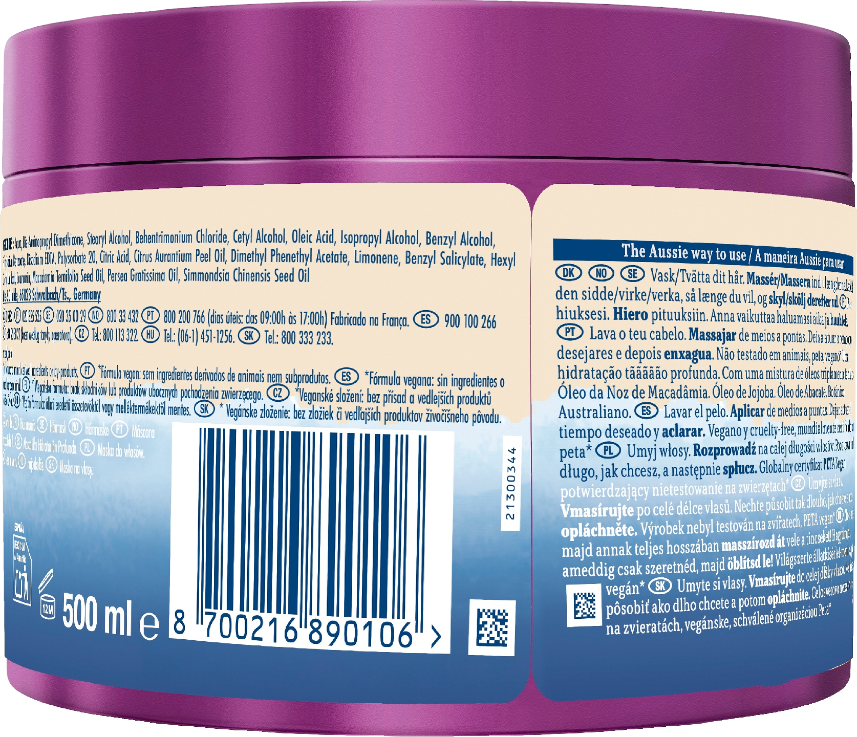Kuivat ja vaurioituneet hiukset kaipaavat kosteutusta? On aika antaa niille syvää rakkautta Aussie Deeep Hydration -hiusnaamion avulla. Tämä vegaaninen ja eläinkokeeton (kunnia) hiushoito kosteuttaa, ravitsee ja hoitaa syvästi kuivia, janovia ja hauraita hiuksia, jotka huutavat TLC:tä. Ja kun sanomme DEEEP, tarkoittamme sitä. Jojobaöljyn, avokadoöljyn ja australialaisen makadamiaöljyn upea sekoitus on juuri se janojuoma kuiville ja paksuille hiuksille. Hiukset tuntuvat silkkisen pehmeiltä ja iloisesti kosteutetuilta jopa 3 päivän* ajan. Mikä tässä ei olisi ihanaa? Lisäksi se on vegaaninen**, ja PETA-sertifioitu eläinkokeeton. Entistä enemmän kosteutta saat yhdistämällä sen Aussie Deeep Hydration -hiustenhoitosarjaan. *verrattuna pelkän ei-hoitavan shampooseen **vegaaninen koostumus: ei eläinperäisiä ainesosia tai sivutuotteita.