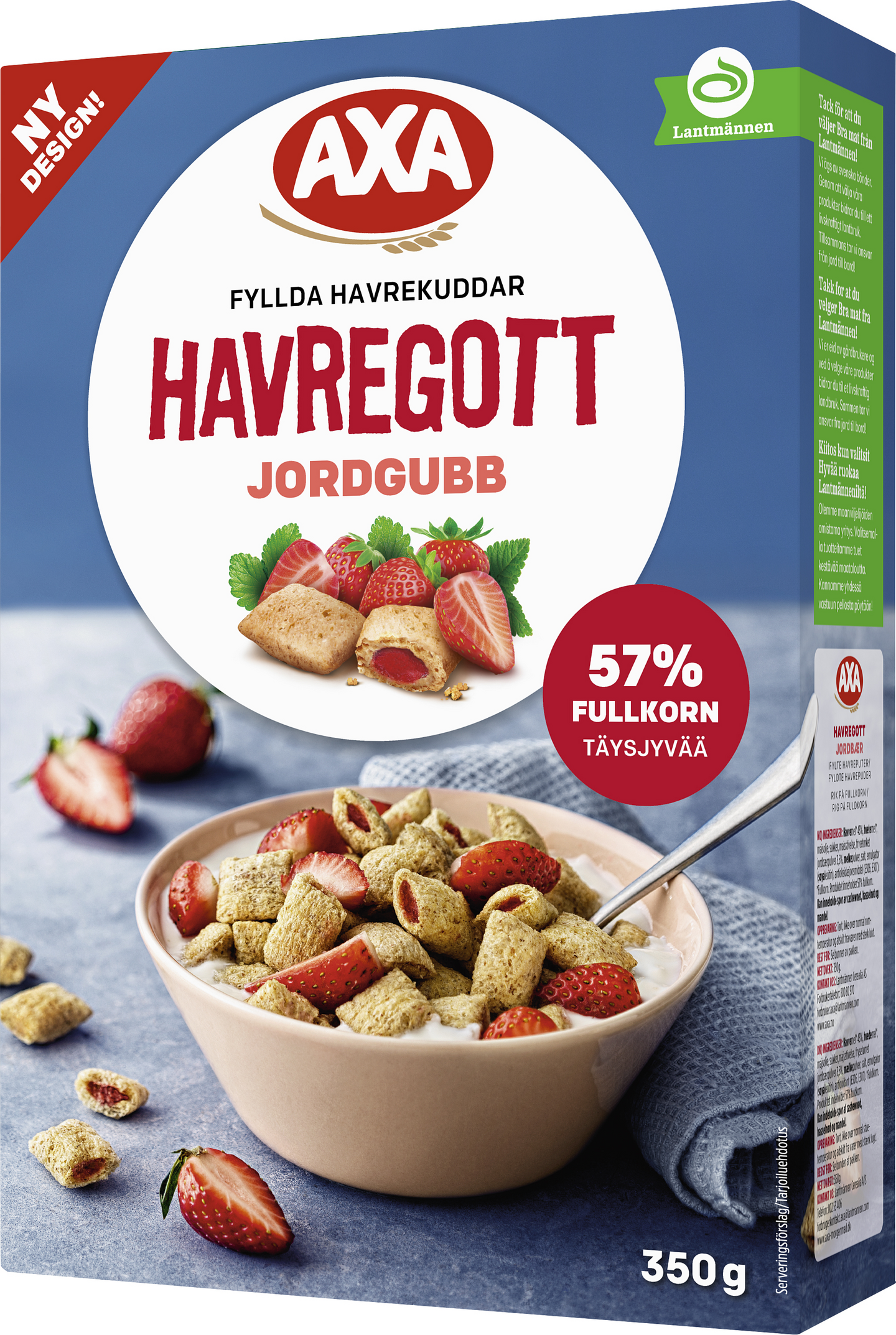 AXA Havregott Mansikassa on mansikan makuisia täytettyjä kauramuroja, jotka ovat ihanan rapeita pinnalta ja täynnä makua. Murojen täyte saa luontaisesti makunsa ja värinsä pakastekuivatuista mansikoista. Kauramuroissamme on runsaasti täysjyvää ja ne sisältävät kuitua – ja ne ovat täynnä voimaa AXA-kaurasta!