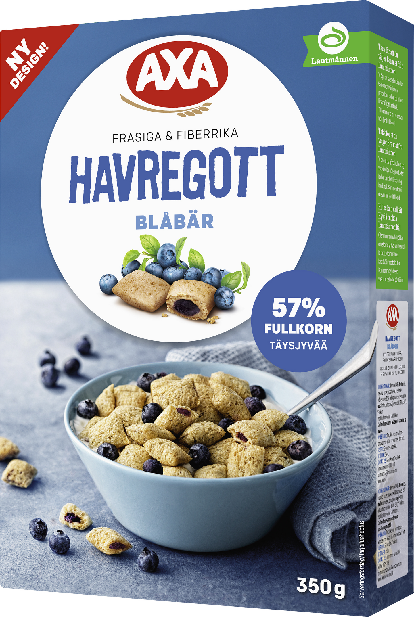 AXA Havregott Mustikassa on mustikan makuisia täytettyjä kauramuroja, jotka ovat ihanan rapeita pinnalta ja täynnä makua. Murojen täyte saa luontaisesti makunsa ja värinsä pakastekuivatuista mustikoista. Kauramuromme sisältävät runsaasti sekä kuitua että täysjyvää – ja ne ovat täynnä voimaa AXA-kaurasta!