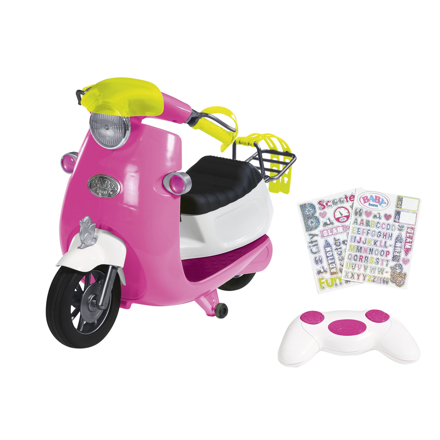 Kauko-ohjattava skootteri BABY born nukelle. Skootterissa valo sekä toimivat vilkut. Mukana tarroja skootterin koristeluun.Ikäsuositus: 3+