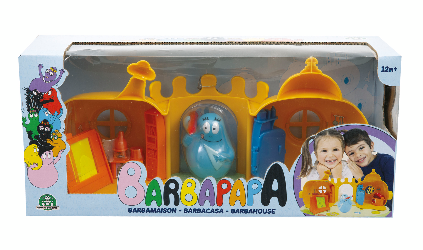 Iloisen värikkäät Barbapapat osaavat muuttaa muotoaan, ja he ovatkin aina valmiita auttamaan muita erilaisissa tilanteissa. Barbapapan talossa leikki saa uusia ulottuvuuksia. Setissä talo, huonekaluja, tarvikkeita ja yksi vaihtuva muovinen hahmo. 1+