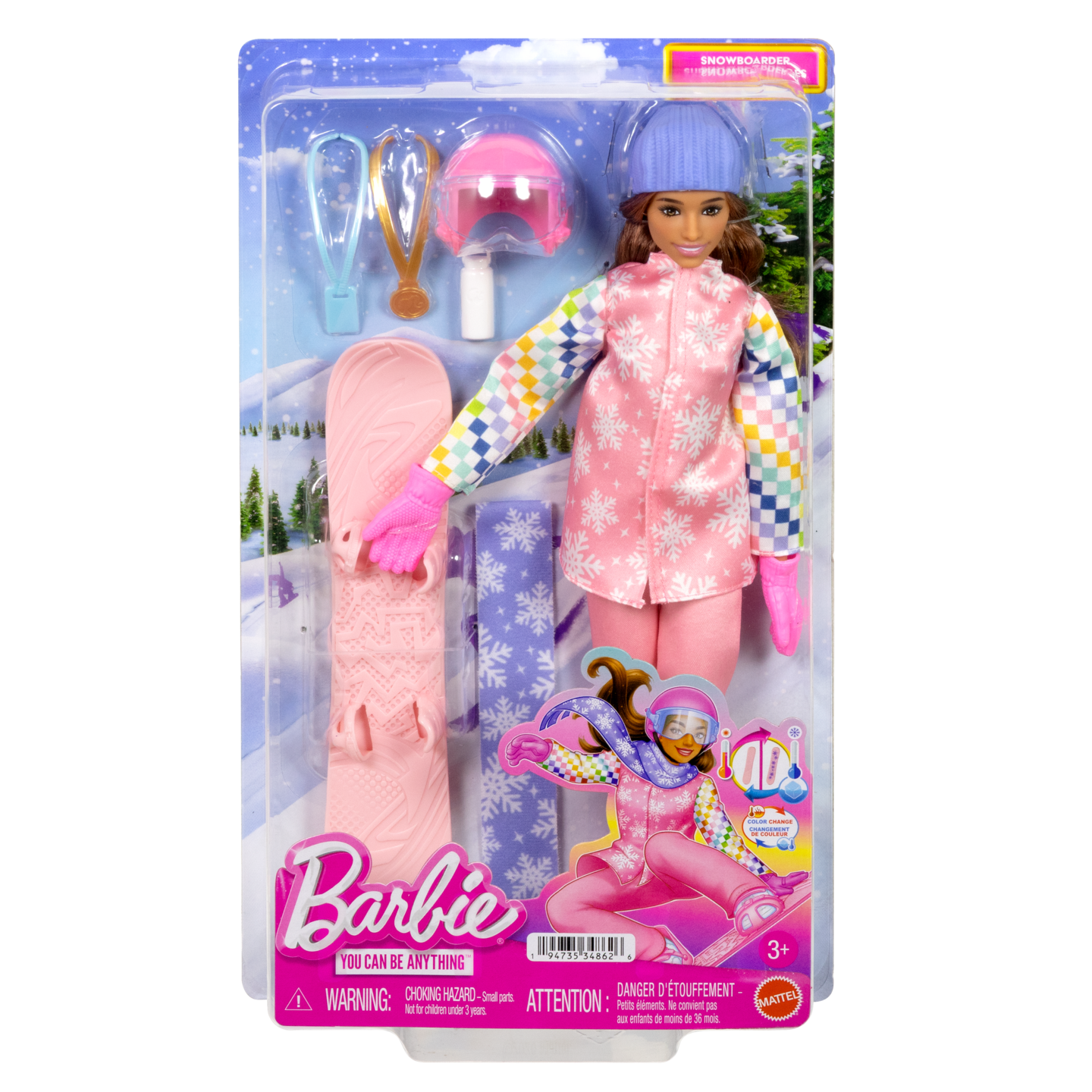 Barbie on urheilullinen lumilautailija, joka innostaa aktiiviseen leikkiin ja tavoittelemaan unelmiaan. Nukella on liikkuvat polvinivelet, jotka mahdollistavat aidon laskuasennon. Lumilauta vaihtaa väriä lumessa tai jäässä, tuoden leikkiin yllätyksellisyyttä. Mukana kypärä, laskettelulasit, hanskat ja lisätarvikkeita, jotka tukevat monipuolista tarinankerrontaa. 3+