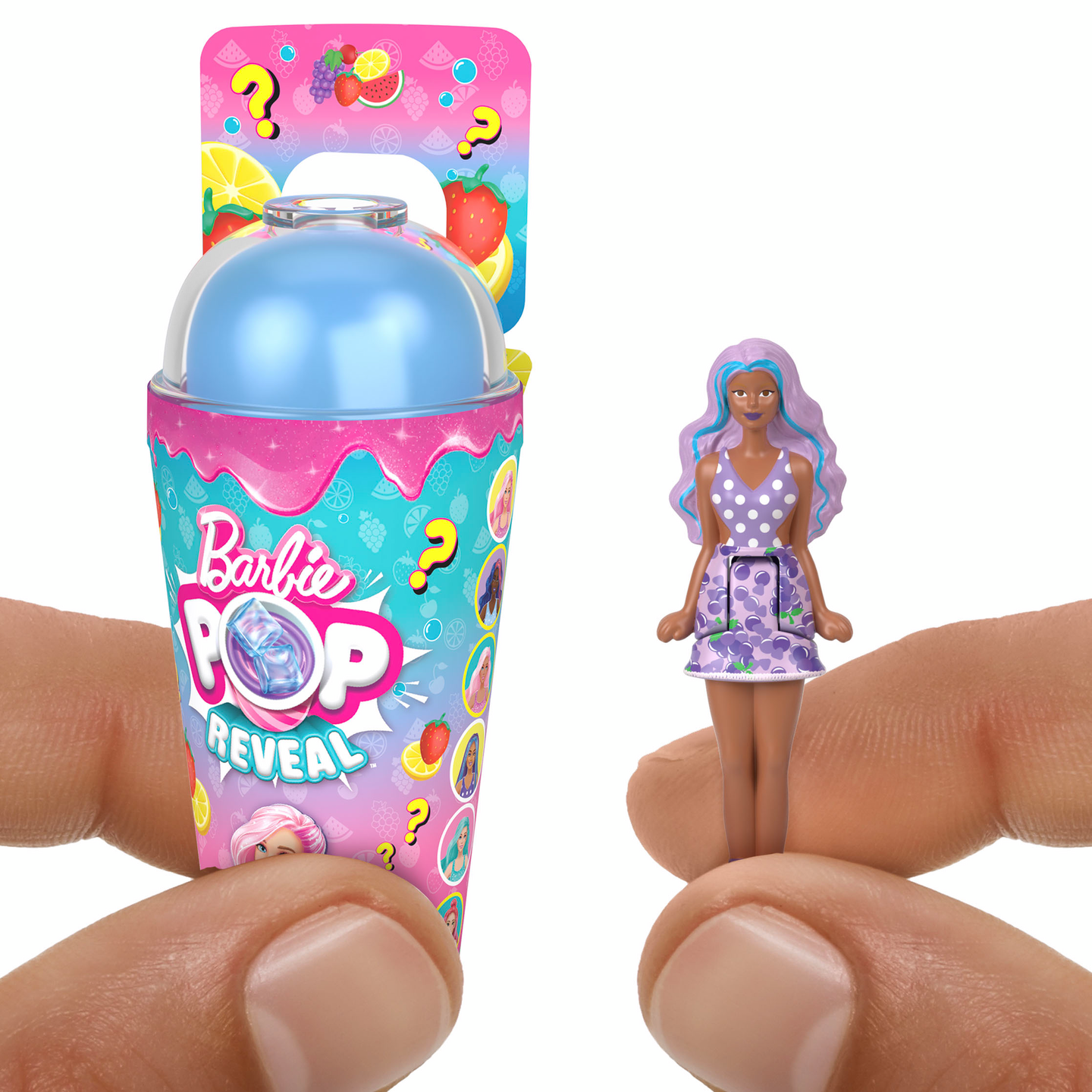 Minikokoinen Barbie Pop Reveal -nukke! Smoothie-mukin sisältä paljastuu kesäinen Barbie-nukke minikoossa ja värikästä limaa. Nuken koko 3,8 cm. Useita erilaisia. 4+