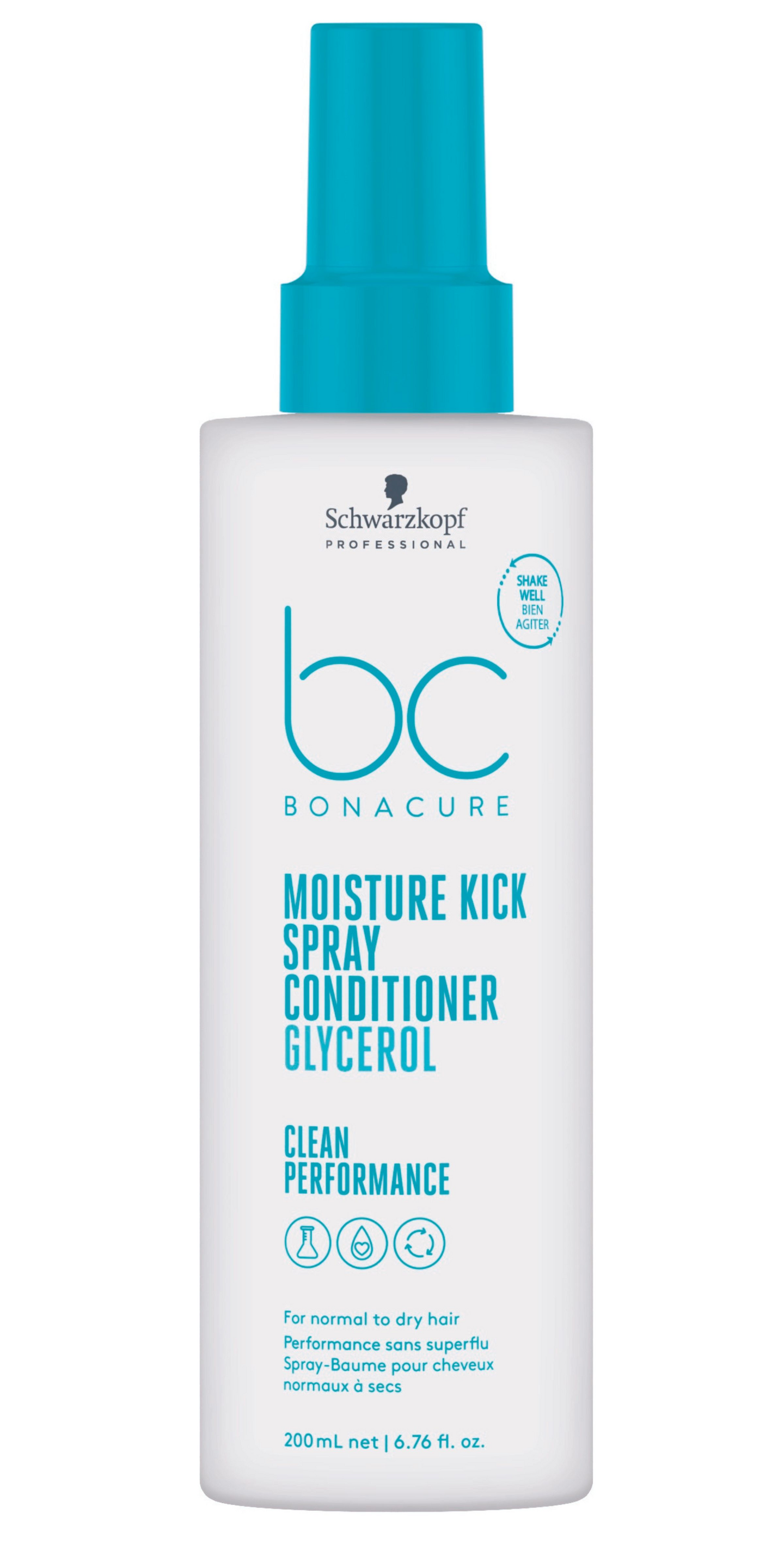 Bonacuren Moisture Kick -sarjan kevyt, välittömästi kosteuttava hiuksiin jätettävä hoitosuihke on suunniteltu normaaleista kuiville, hauraille tai kiharille hiuksille. Ei sisällä silikoneja tai keinotekoisia väriaineita. Hoitaa ja tasapainottaa hiusten kosteuspitoisuutta. Tekee hiuksista pehmeät, taipuisat ja ravitut sekä antaa runsasta kiiltoa ja kimmoisuutta. Glyserolia sisältävä koostumus tasapainottaa hiusten kosteuspitoisuutta. Antaa koteutetun tunteen jopa 48 tunnin ajaksi. Vegaaninen koostumus, ei sisällä eläinperäisiä ainesosia.