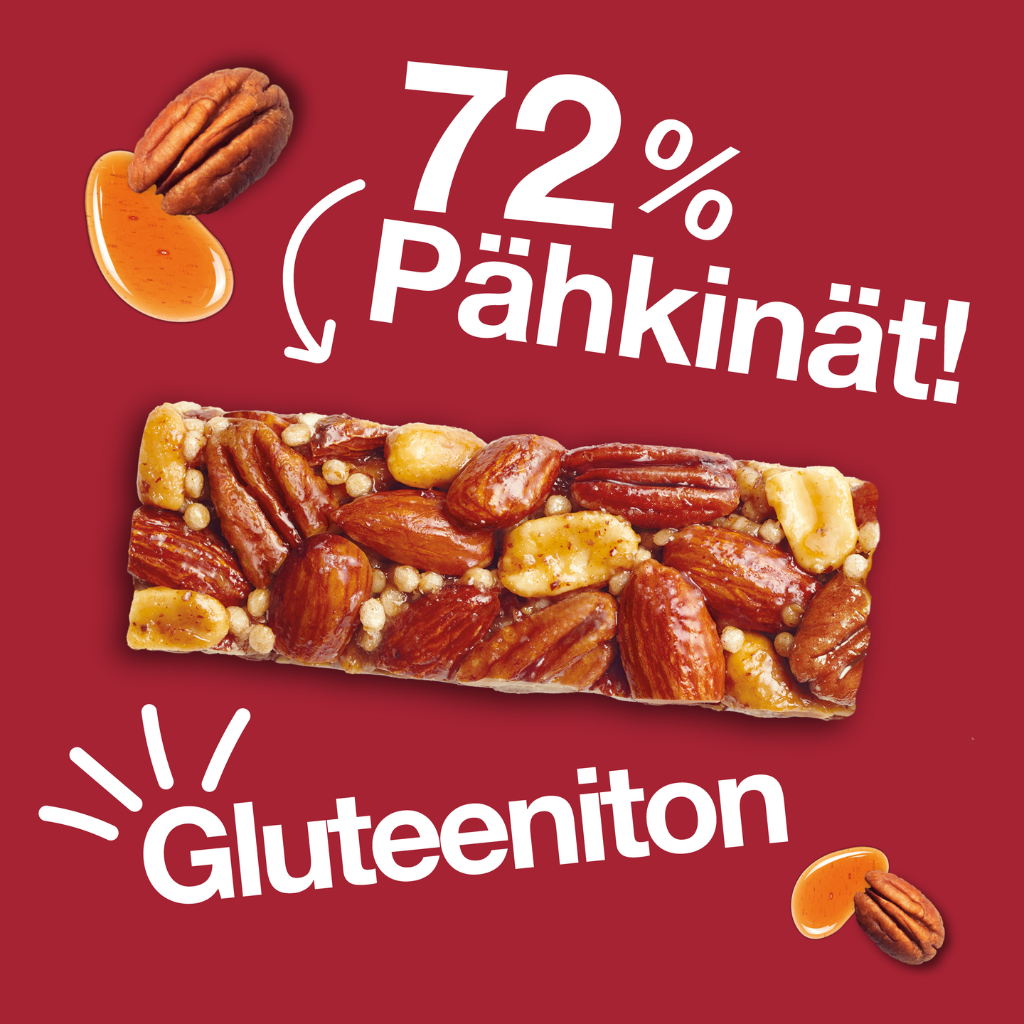 Makeansuolainen yhdistelmä pekaanipähkinöitä, manteleita ja maapähkinää, jossa on juuri oikea kosketus vaahterasiirappia ja merisuolaa.