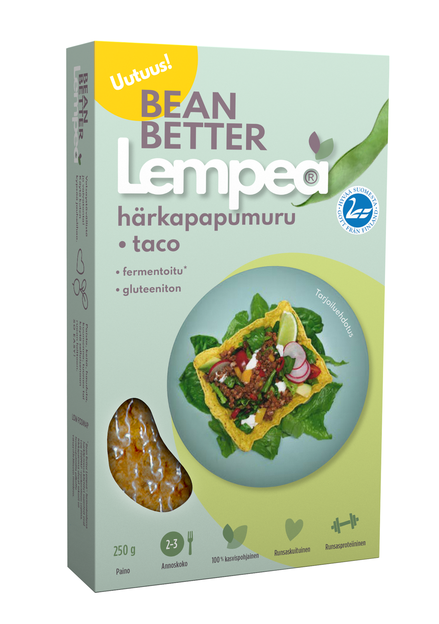 Bean Better lempeä härkäpapumuru taco, tässä sinulle paketti ilmavaivatonta ja maukasta papua
