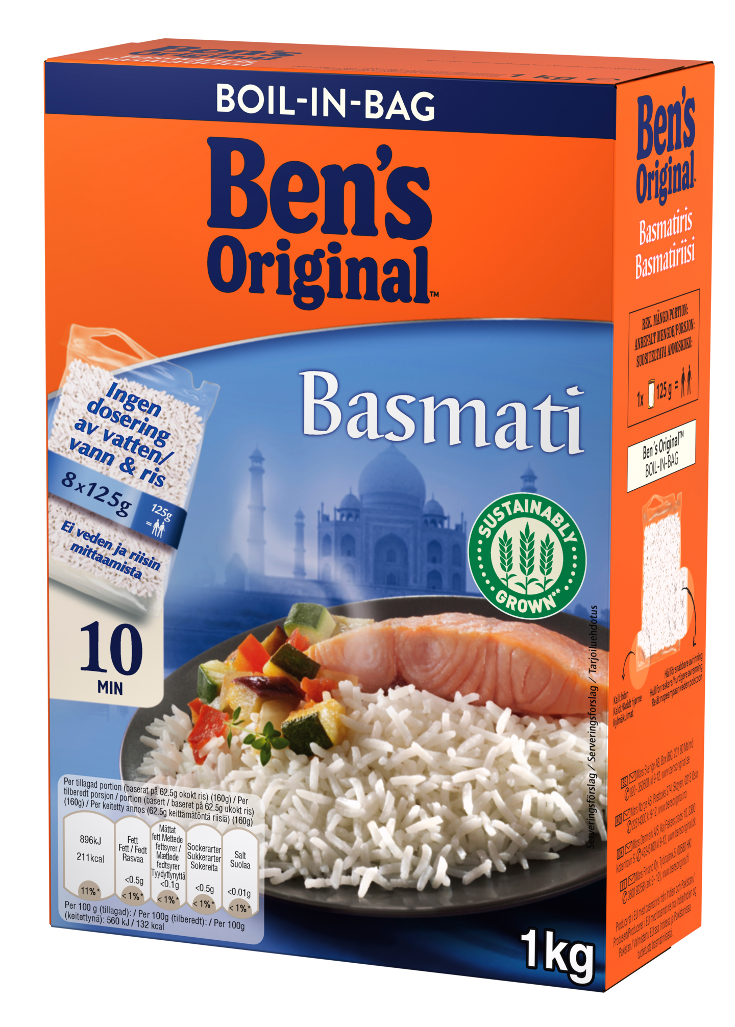 Ben's Original™ Basmatiriisi täyttää kestävän kehityksen vaatimukset. Sitä viljellään Intiassa Himalajan vuoriston juurella ja varastoidaan puoli vuotta, jotta sen luonnollinen aromikas tuoksu ja maku vahvistuvat. Sille tyypillinen pähkinäinen aromi tulee esille keitettäessä. Herkullinen riisi kypsyy vain 10 minuutissa. Keittopussi säästää veden mittaamisen vaivan ja poistaa riisin pohjaan palamisen vaaran.