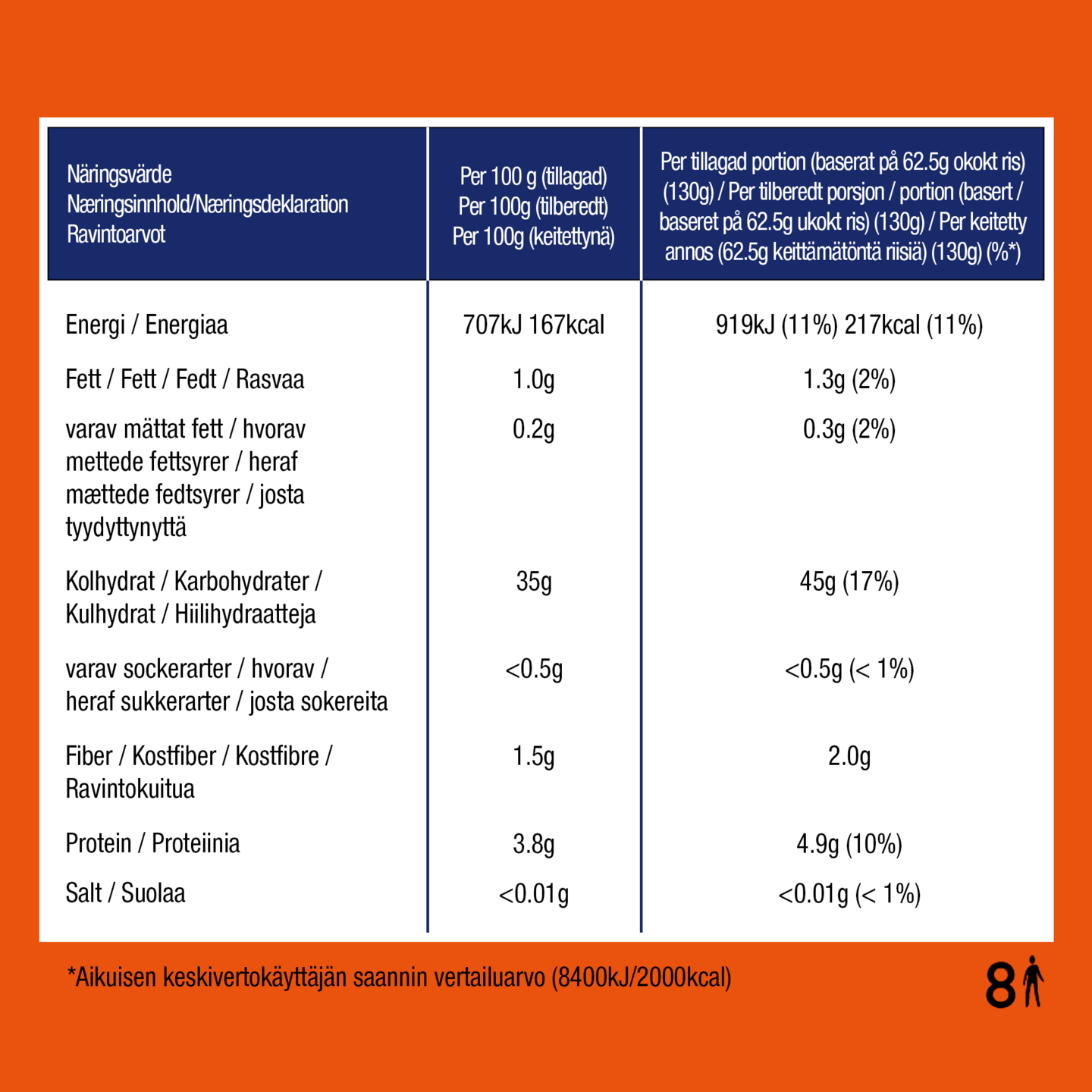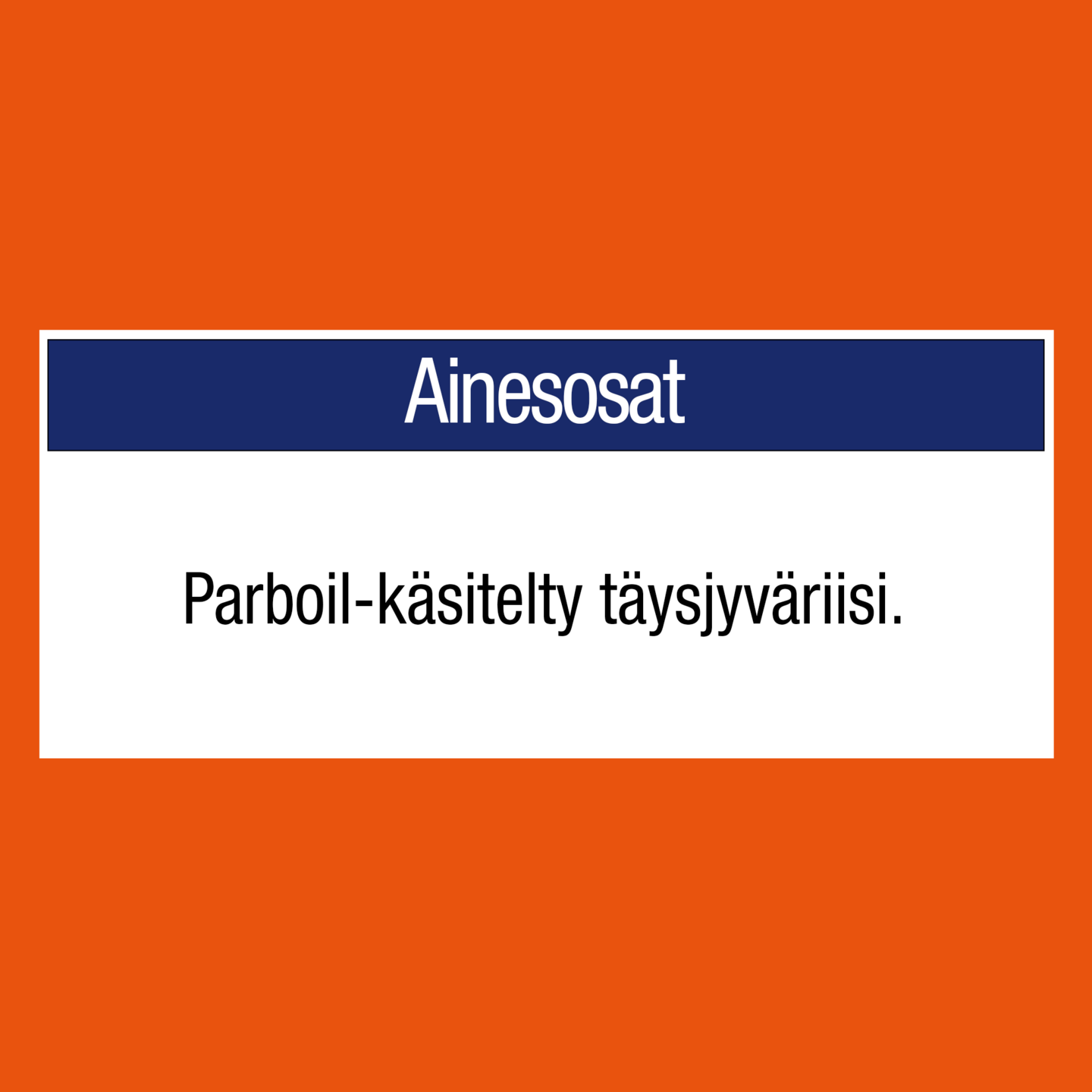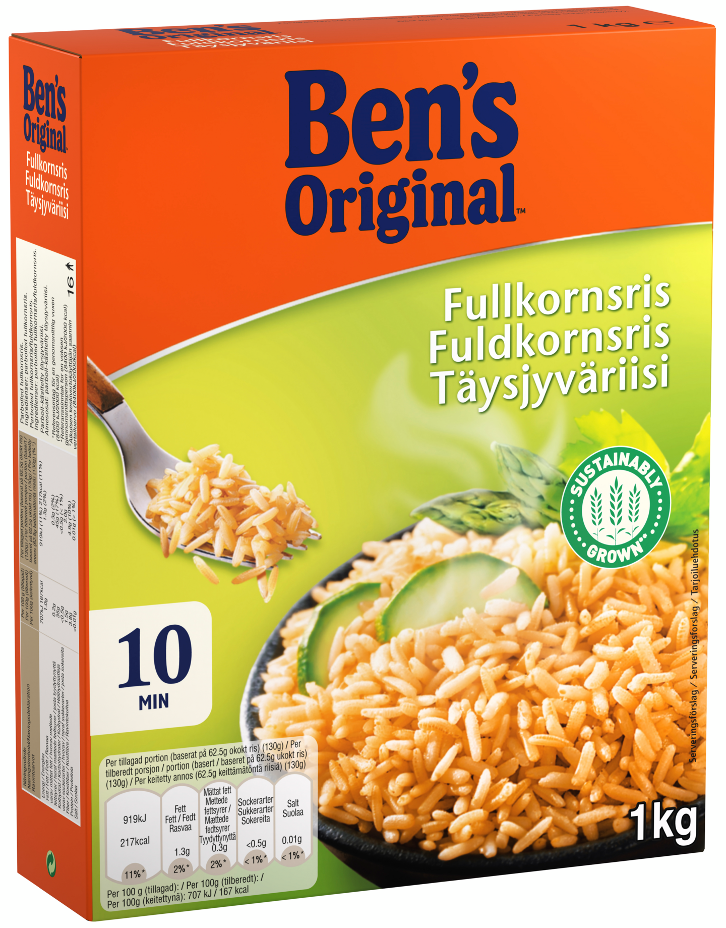 Ben's Original™ Täysjyväriisi onnistuu aina täydellisesti! Ja keittämiseen kuluu vain 10 minuuttia! Täysjyväriisi saa voimakkaan makunsa ja luonteenomaisen al dente -koostumuksensa, kun sitä viljellään huolellisesti Espanjassa ja Italiassa vallitsevissa olosuhteissa. Suurempi osa terveellisistä kuidusta ja vitamiineista säilyy, kun riisinjyviä kiillotetaan vähemmän kuin tuttua valkoista riisiä. Kun korvaat tavallisesti käyttämäsi riisin Ben’s Original Täysjyväriisillä, voit nauttia lempiruoistasi hyvällä omallatunnolla.