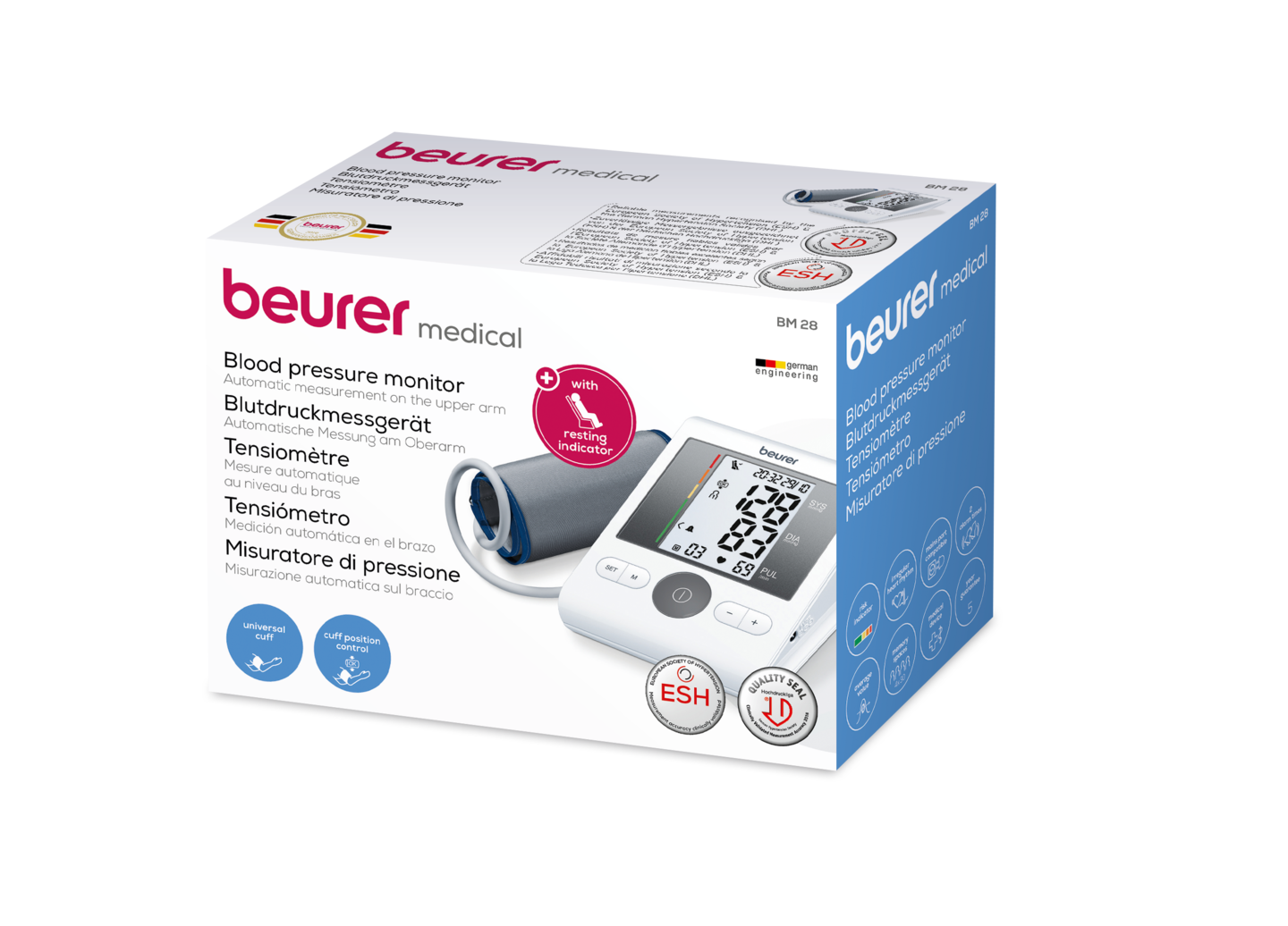 Beurer BM28 on täysin automaattinen verenpainemittari, joka mittaa ylä- ja alapaineen sekä sykkeen olkavarresta. Laite varoittaa myös mahdollisesta rytmihäiriöstä.
