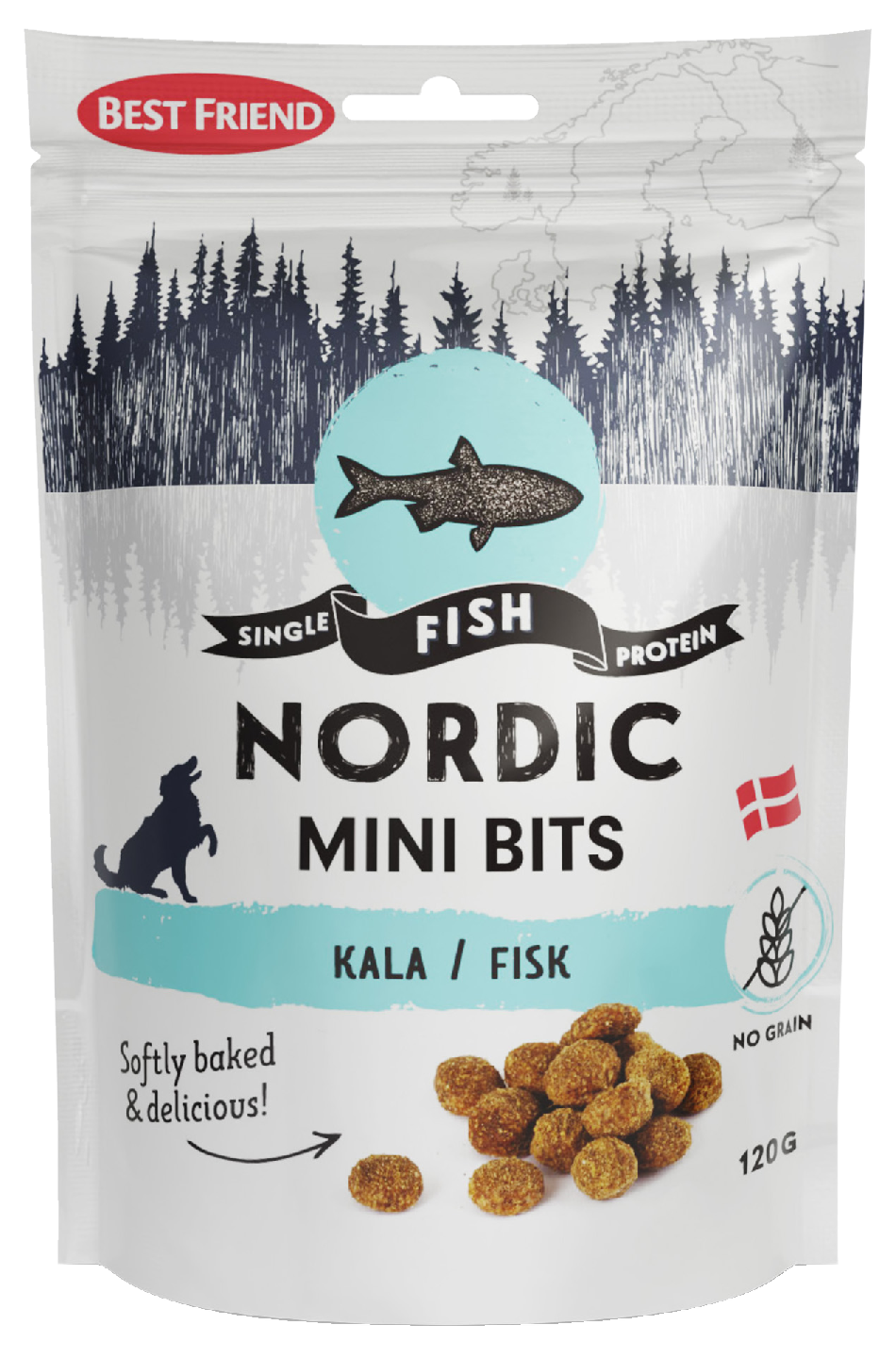 Pohjolan parhaimmista raaka-aineista. Nämä maukkaat monoproteiiniherkut on vastuullisesti valmistettu omalla tehtaallamme Tanskassa. Pehmeästi paistetut ja herkullisen lihaisat makupalat on luotu eläinlääkärin kehittämien reseptien pohjalta, jotka takaavat suussa sulavan makuelämyksen nirsoimmillekin makuhermoille. Voit palkita, kouluttaa tai tarjota Nordic Mini Bitsejä herkkuina koirallesi – nämä pienet makupalat sopivat mihin tahansa! Nordic Mini Bits kala makupalat sisältävät runsaasti paikallista kalaa ja ne on valmistettu ilman viljaa. Pieni pala Pohjolaa parhaalle ystävällesi.