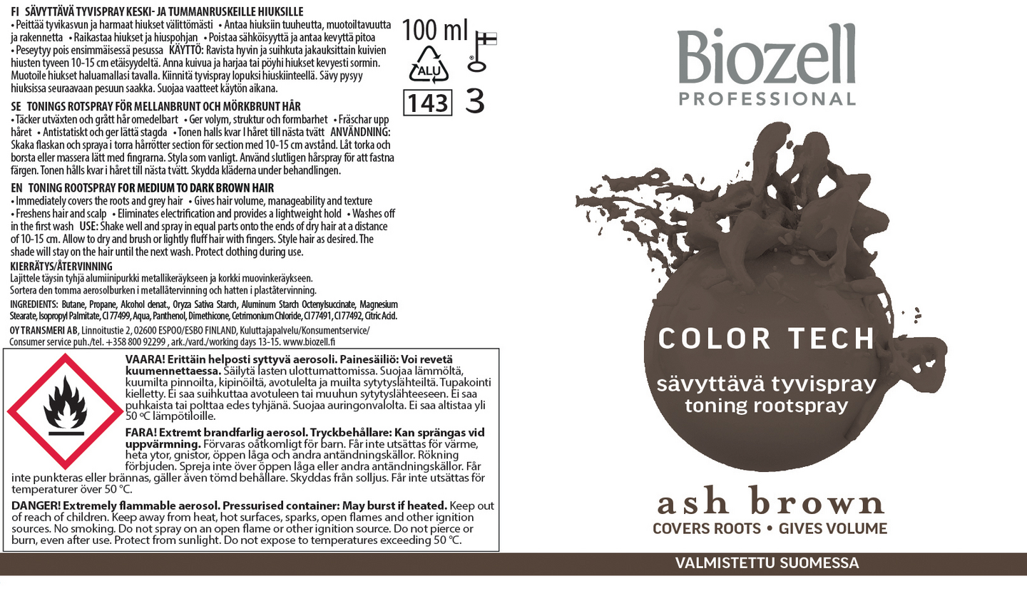 Sävyttävä tyvispray keski- ja tummaruskeille hiuksille. Peittää tyvikasvun ja harmaat hiukset välittömästi, antaa hiuksiin tuuheutta, muotoiltavuutta ja rakennetta. Raikastaa hiukset ja hiuspohjan. Poistaa sähköisyyttä ja antaa kevyttä pitoa. Peseytyy pois ensimmäisessä pesussa. Hajusteeton. Valmistettu Suomessa.