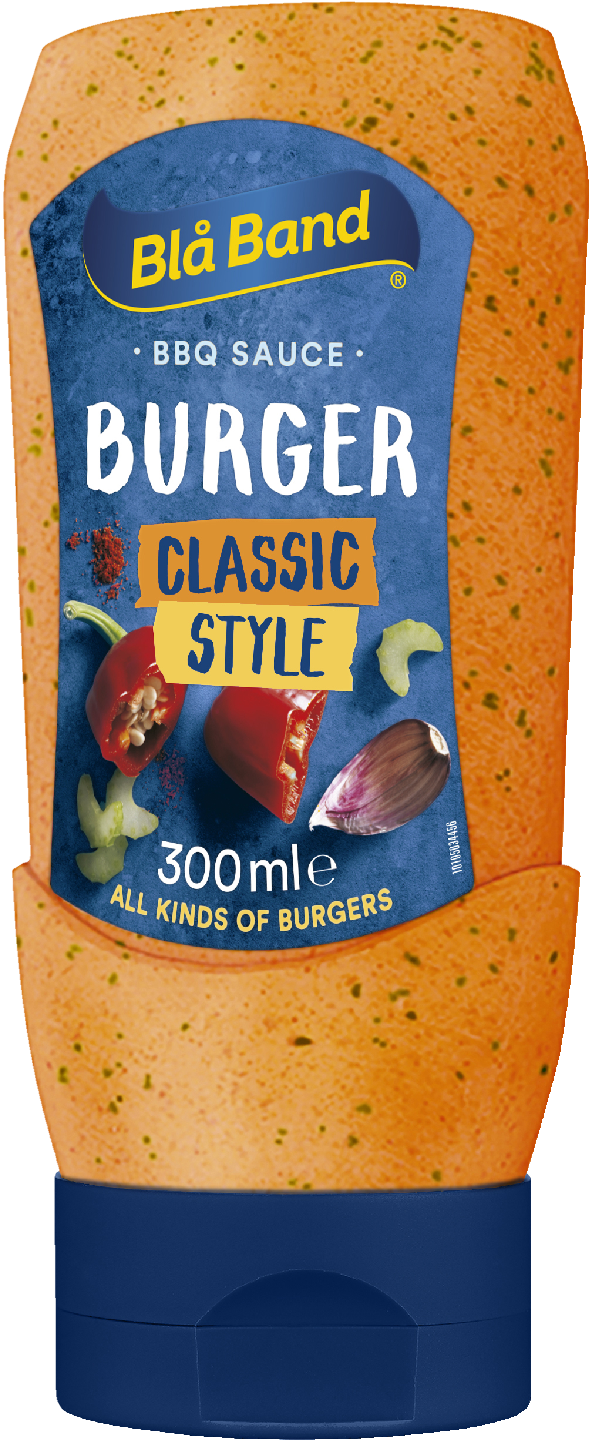 Blå Band Burgerkastikeessa on hyvä paprikan ja sipulin maku, ja se sopii erinomaisesti hampurilaisten ja muiden grillattujen lihojen kanssa.