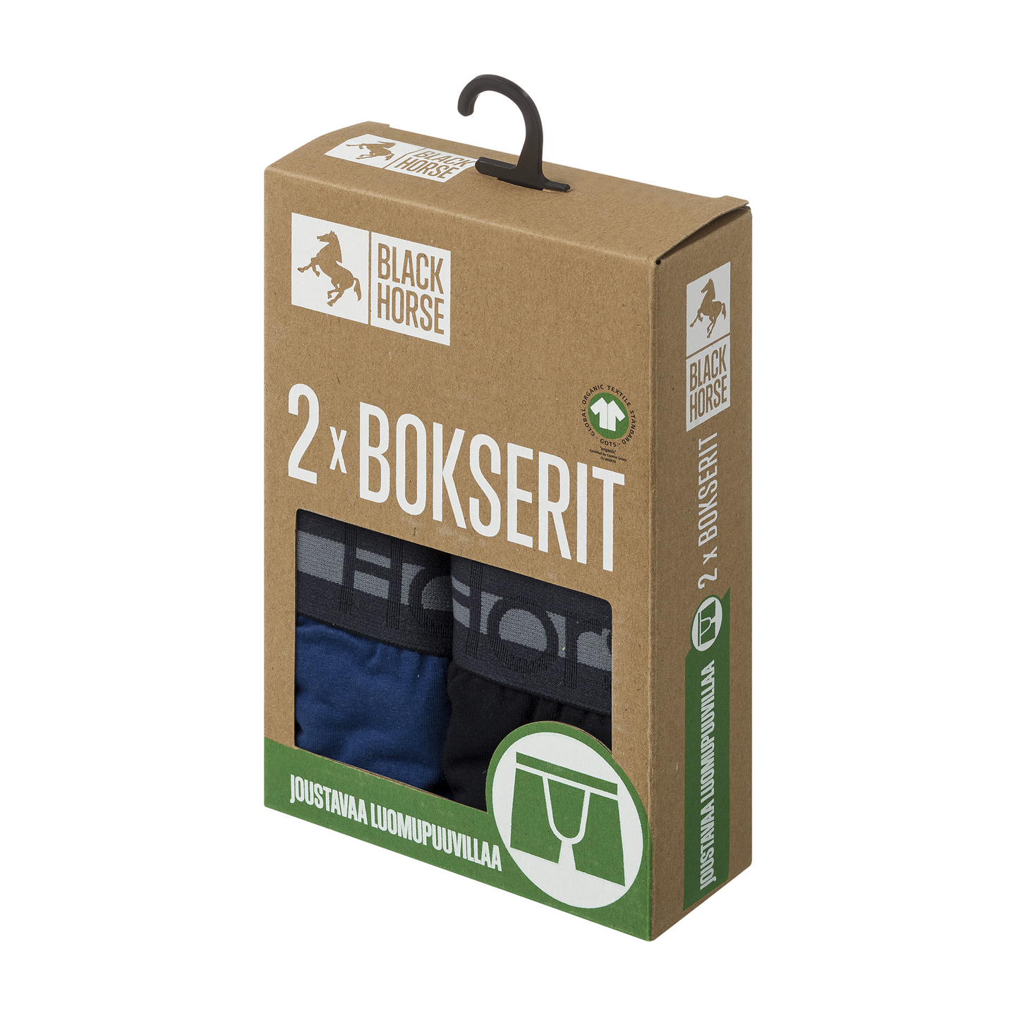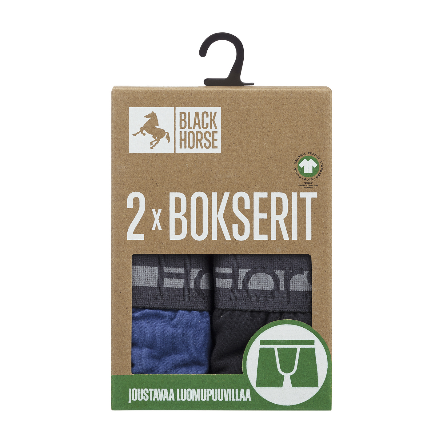 Joustavasta GOTS-sertifioidusta luomupuuvillasta valmistetut Black Horse bokserit istuvat täydellisesti ja ovat mukavat päällä koko päivän. Leveä vyötärökuminauha ja ihanteellinen lahkeenpituus takaavat erinomaisen istuvuuden. Ei hiertäviä saumoja tai pesulappuja – vain täydellinen mukavuus. GOTS-sertifiointi takaa tuotteen ekologisuuden ja eettisyyden huomioiden koko tuotantoketjun. Kahden kappaleen pakkaus.
