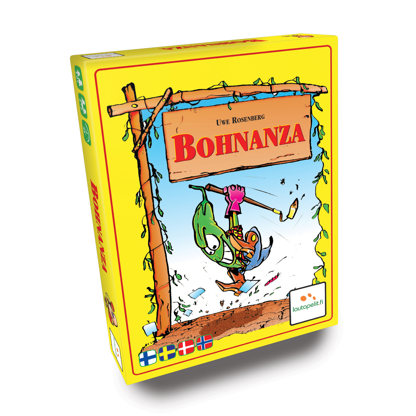 Bohnanza on omalaatuinen korttipeli, jossa kortit ovat erilaisia hauskasti kuvitettuja papuja. Eri papulaatujen harvinaisuus ja siten arvokkuus vaihtelee. Mitä harvinaisempi papu, sitä enemmän rahaa sen myymisestä saa. Kaupankäynti ja hyvät myyntipuheet ovat avain pelissä menestymiseen. "Papupeli" sopii hyvin niin perhepeliksi kuin peliharrastajillekin! Sisältö: 154 papukorttia, 7 palstakorttia, säännöt.