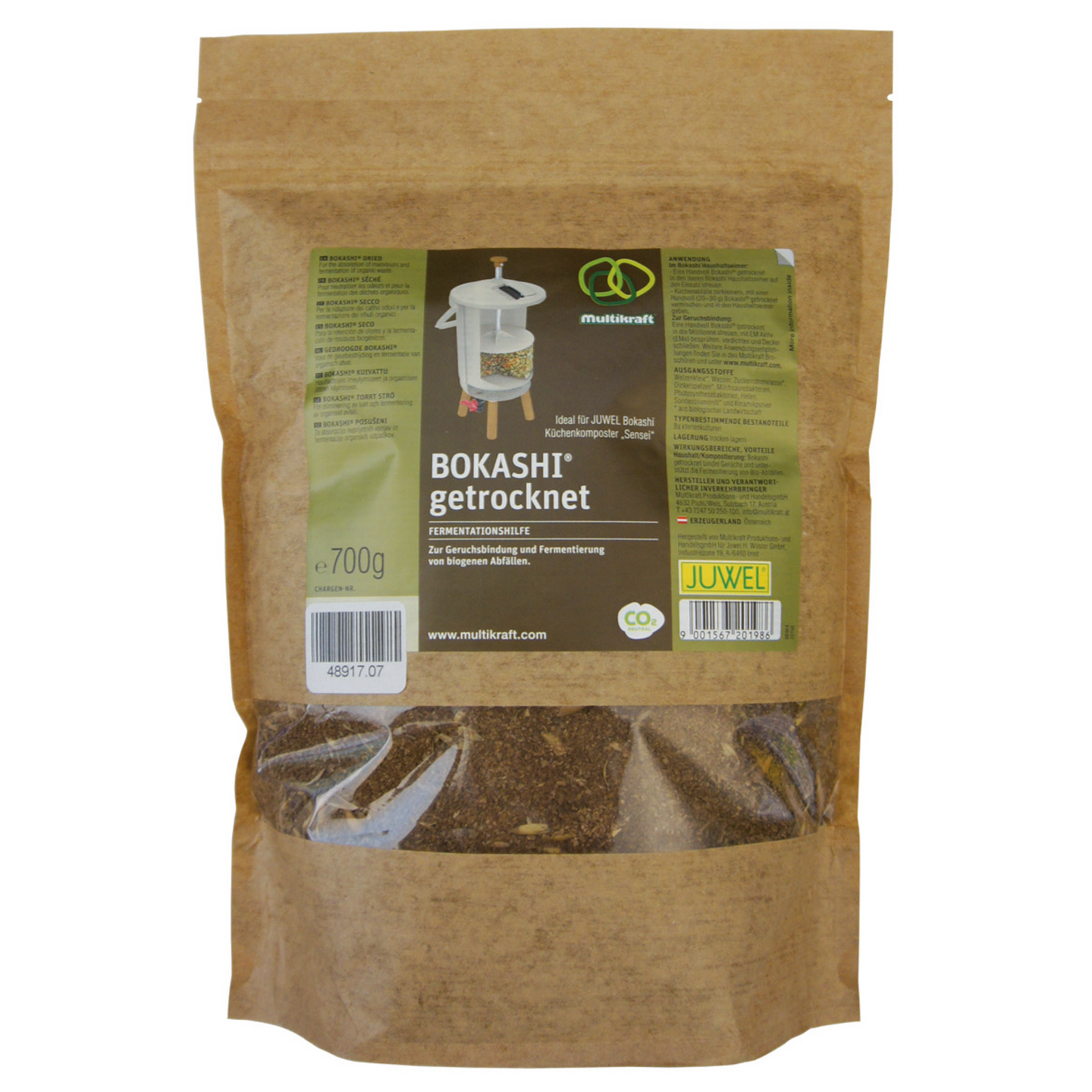 Käyttö: Ripottele rouhetta yksi ruokalusikallinen jätteen päälle jokaista kahta litraa orgaanista jätettä kohden.