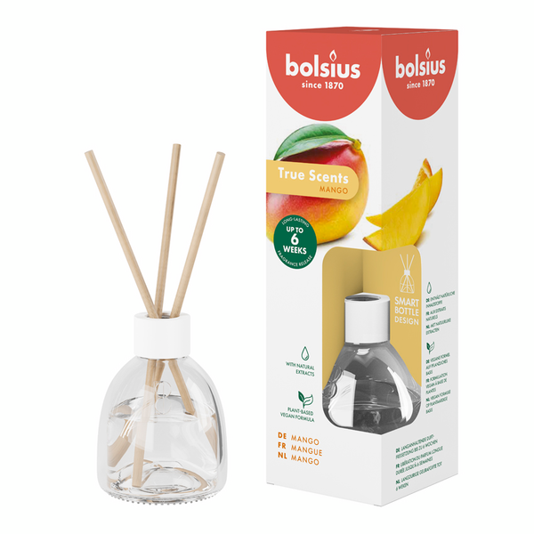 Nauti Mango tuoksuisen True Scents -huonetuoksun pitkään kestävästä tuoksuelämyksestä. Pullo on muotoiltu siten, että kolme tuoksutikkua voidaan asetella optimaalisesti. Optimaalisen vegaanisen koostumuksen ansiosta tuoksutikut levittävät miellyttävää tuoksuaan jopa 6 viikon ajan. Nauti mangon trooppisesta tuoksusta aivan kuin olisit eksoottisella saarella. Koe hedelmäisen mangon puhdas tuoksu mukavasti omassa kodissasi. Valmistettu CleanScent-tekniikalla, takaamme puhtaimman tuoksu kokemuksen ja puhtaimman tuoksu vapautuksen.