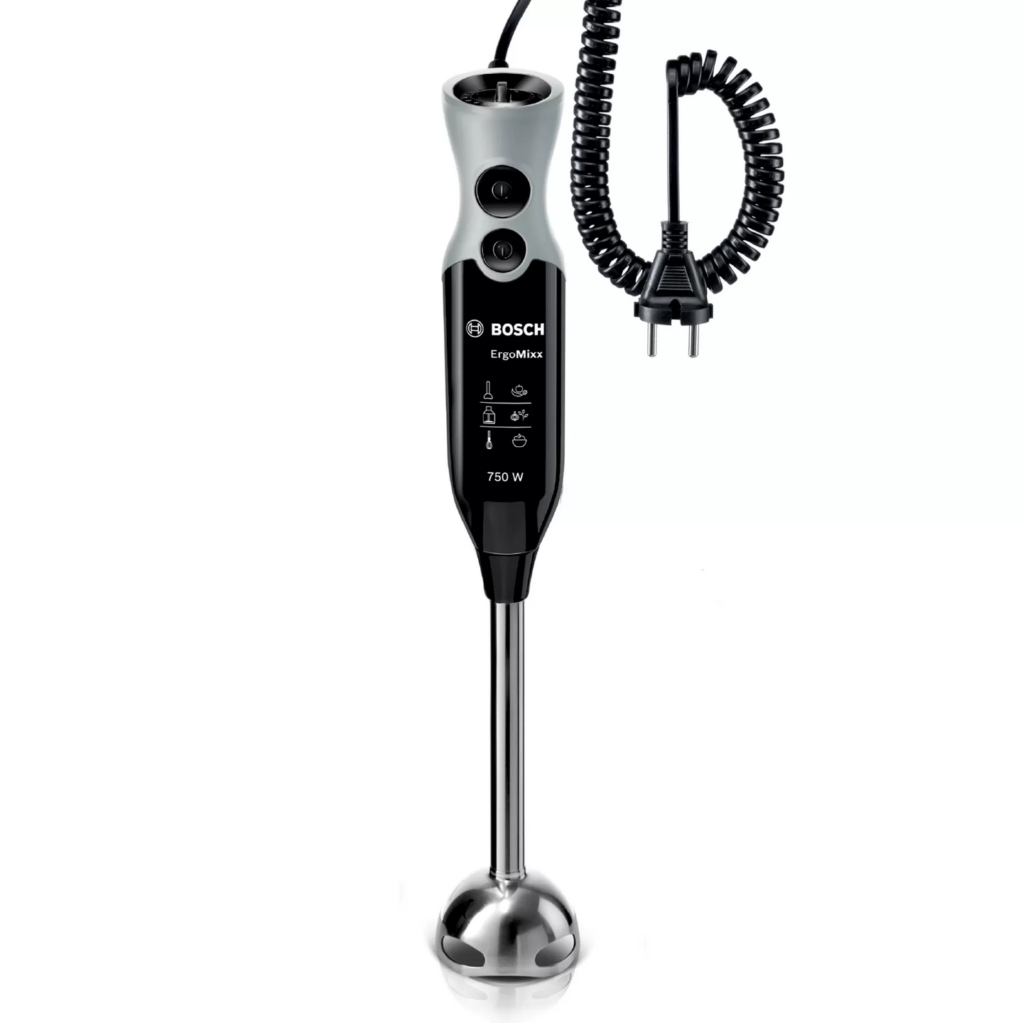 Tehokas 750 watin Bosch moottori: sopiva teho ja sopivat lisävarusteet kaikille raaka-aineille. Bosch QuattroBlade -terä: optimaalinen lopputulos niin leikkuulle kuin sekoittamiselle – ilman roiskeita, AntiSplash. Ergonominen ja helppokäyttöinen: kevyt teräskotelointi ja pehmeä soft touch -kädensija, josta saat pysyvän otteen. 12 eri nopeutta sekä turbo-toiminto takaavat, että löydät juuri oikean tehotason valmistamallesi reseptille. Yleisleikkuri jääterällä sekä vispilä: valmista vaihtelevaa ja monipuolista kotiruokaa.