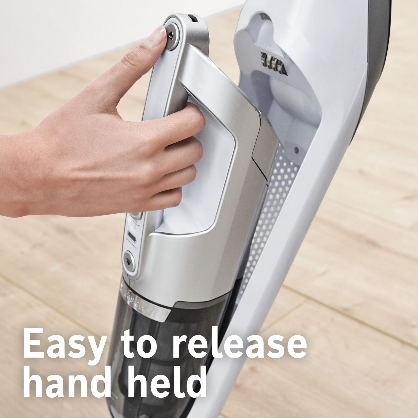 Imurointi huonekalujen ympäriltä ja alta onnistuu helposti imurin joustavan muotoilun ansiosta. Seisoo itsenäisesti pystyssä, minkä ansiosta helppo säilyttää ja ladata missä tahansa.