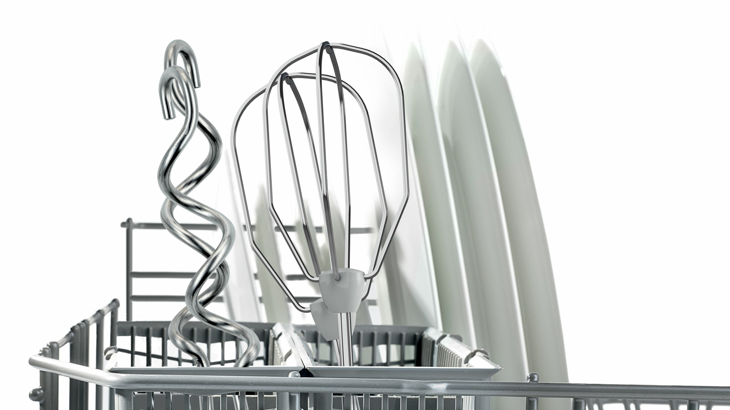 Irrotuspainike vapauttaa varusteen rungosta helposti puhdistusta varten. Pese vispilät kätevästi astianpesukoneessa.