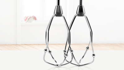 Irrotuspainike vapauttaa varusteen rungosta helposti puhdistusta varten. Pese vispilät ja taikinakoukut kätevästi astianpesukoneessa.