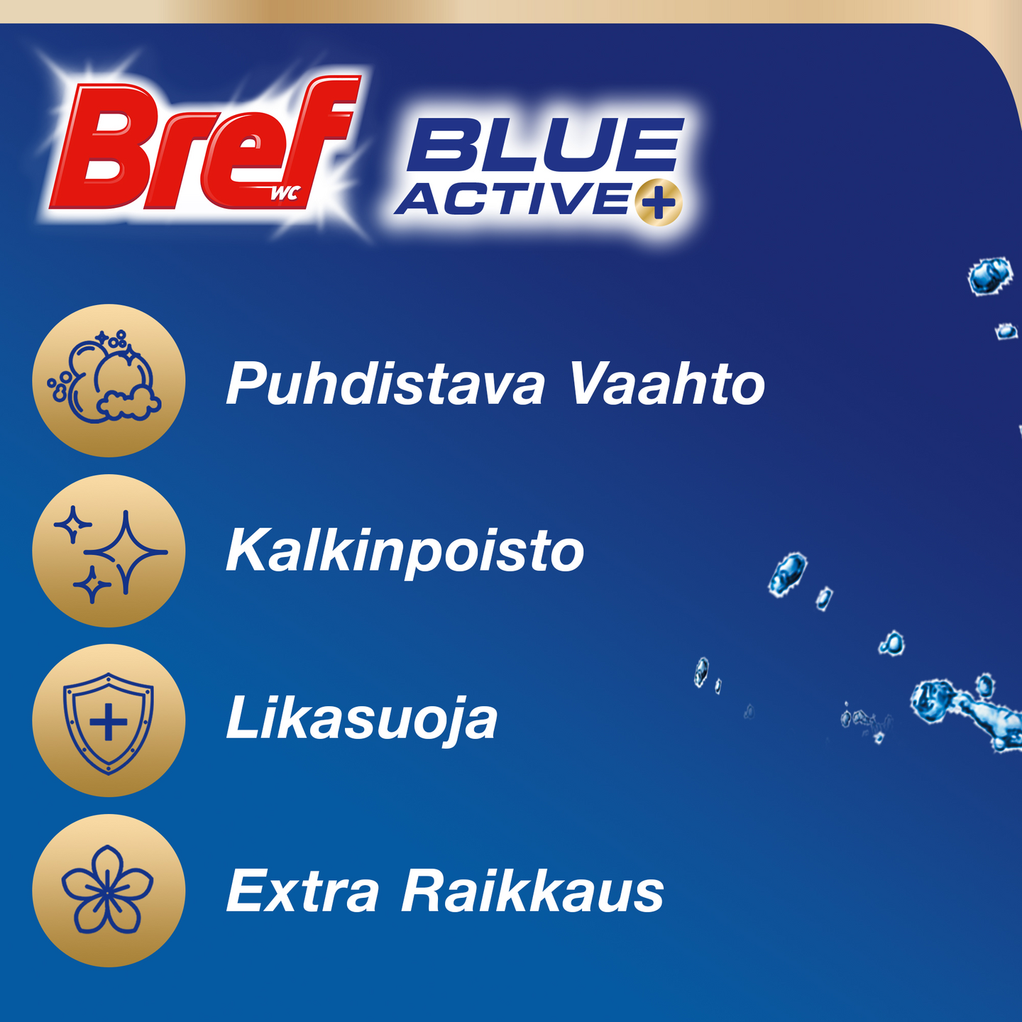 Bref Blue Active Flower on WC-raikastin, jossa on sinisen huuhtelun lisäksi hurmaava kukkaistuoksu. 50% enemmän kiiltoa puhdistavan polymeerin ansiosta sekä hajua estävä teknologia. WC-raikastin jättää WC altaan erittäin puhtaaksi ja raikkaaksi pitkäksi aikaa.