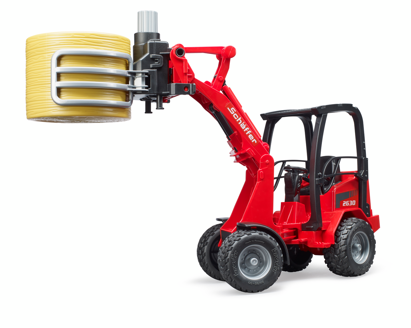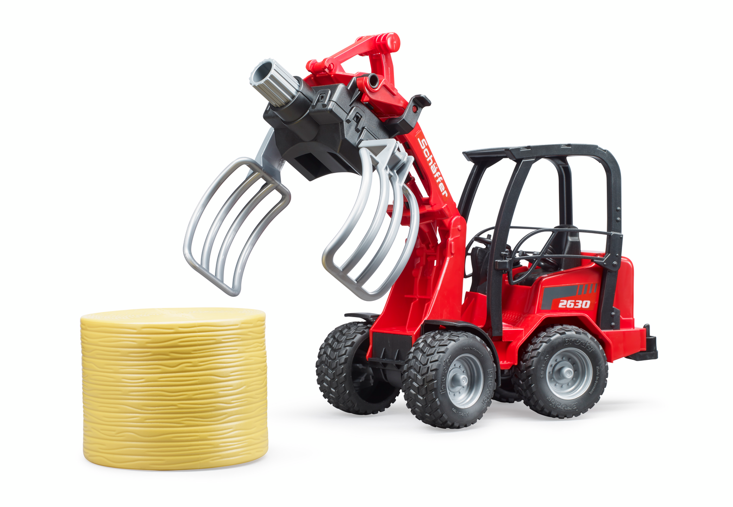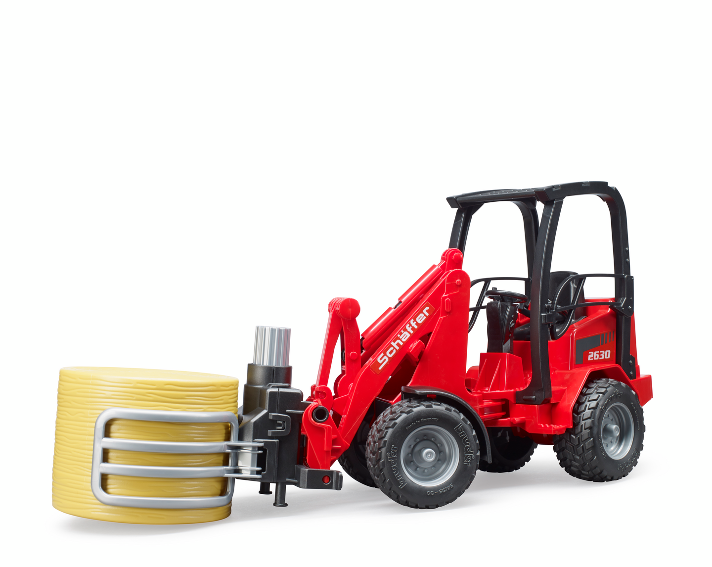 Bruder Schäffer Compact loader 2630 paalipihdeillä ja 1 pyöröpaali lelu