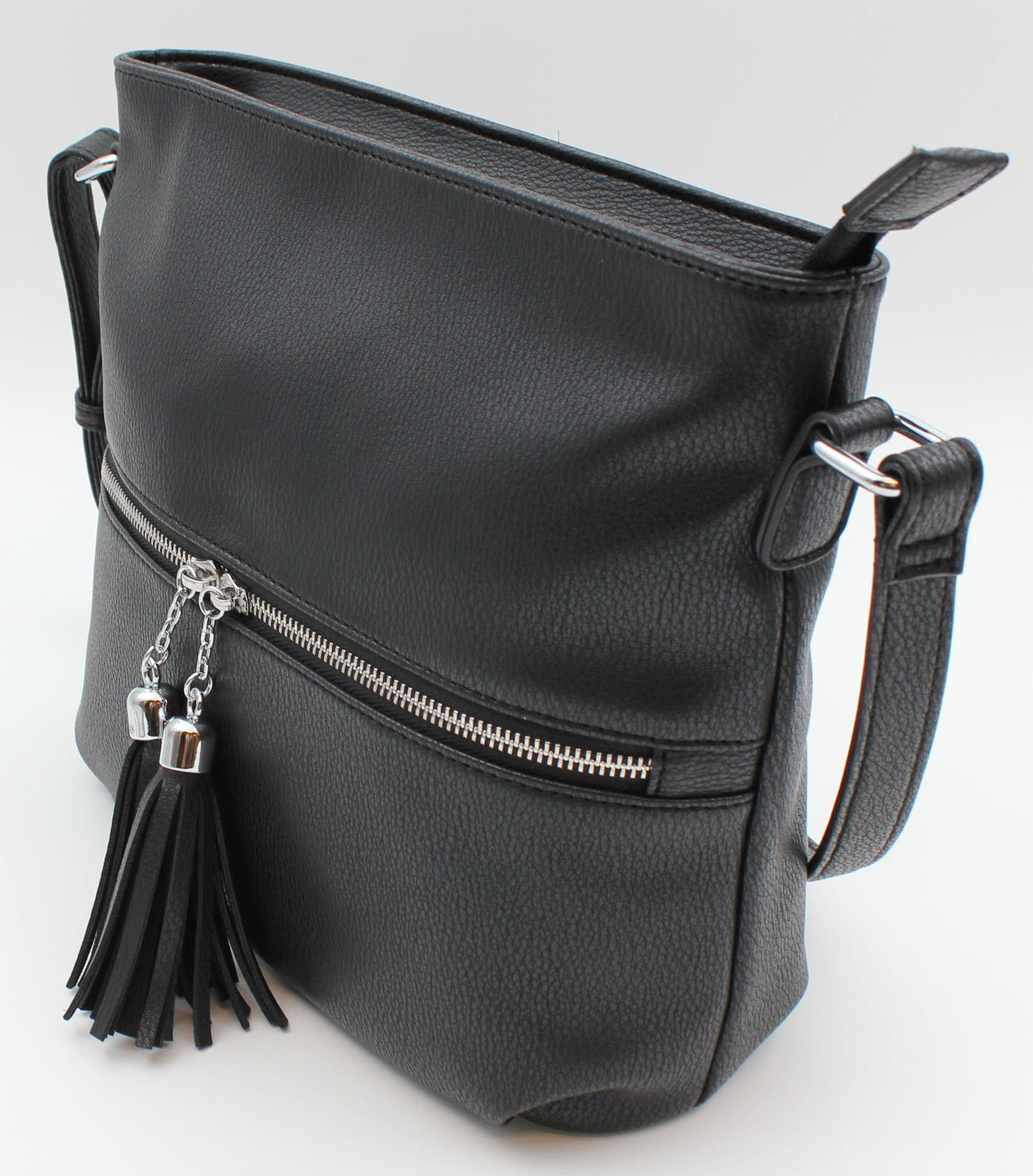 Brunelli olkalaukku, jossa vetoketjulliset etu-, taka-, sisä- sekä päätaskut ja säädettävä olkahihna.