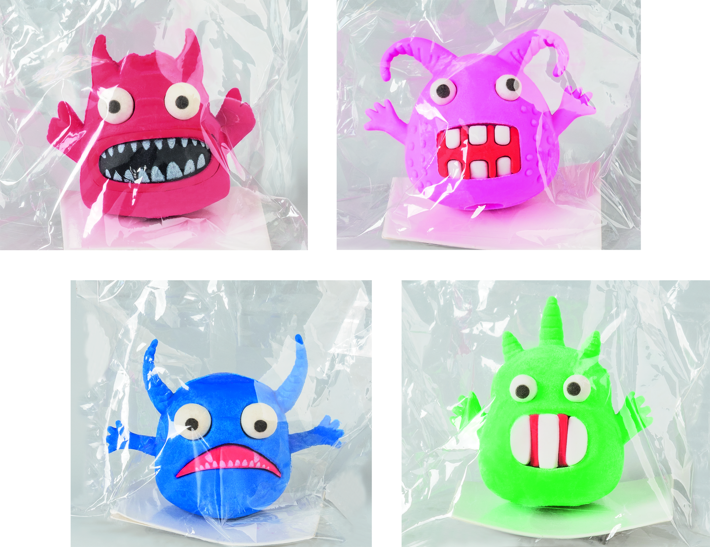 Pyyhekumi hirviö, saatavilla 4 erilaista.